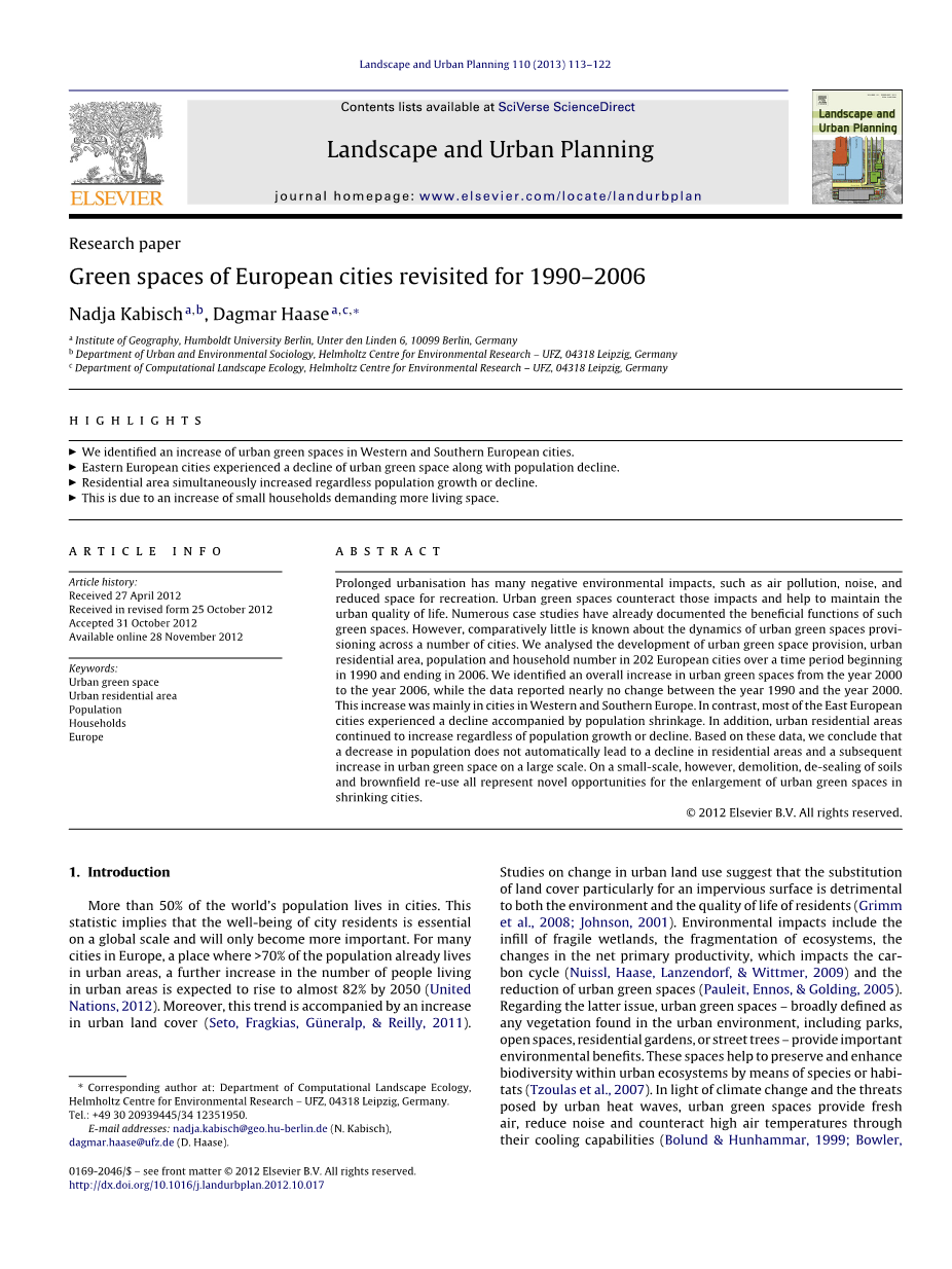 1990- -2006年的欧洲城市绿地的再次研究外文翻译资料
