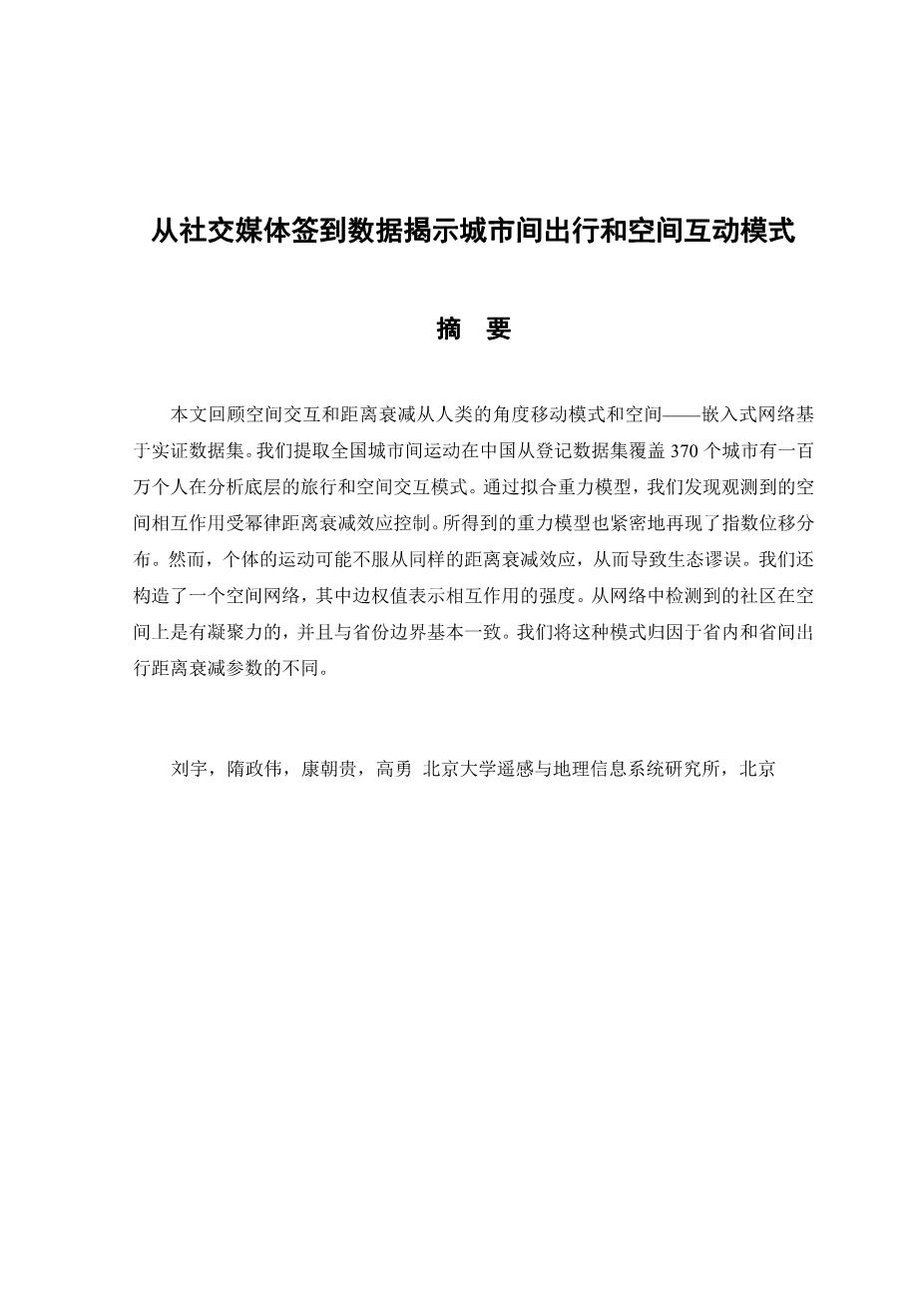 从社交媒体签到数据揭示城市间出行和空间互动模式外文翻译资料