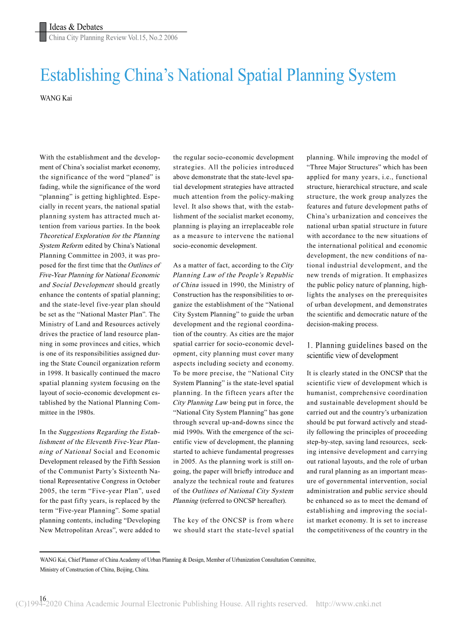 建立中国国家空间规划体系外文翻译资料