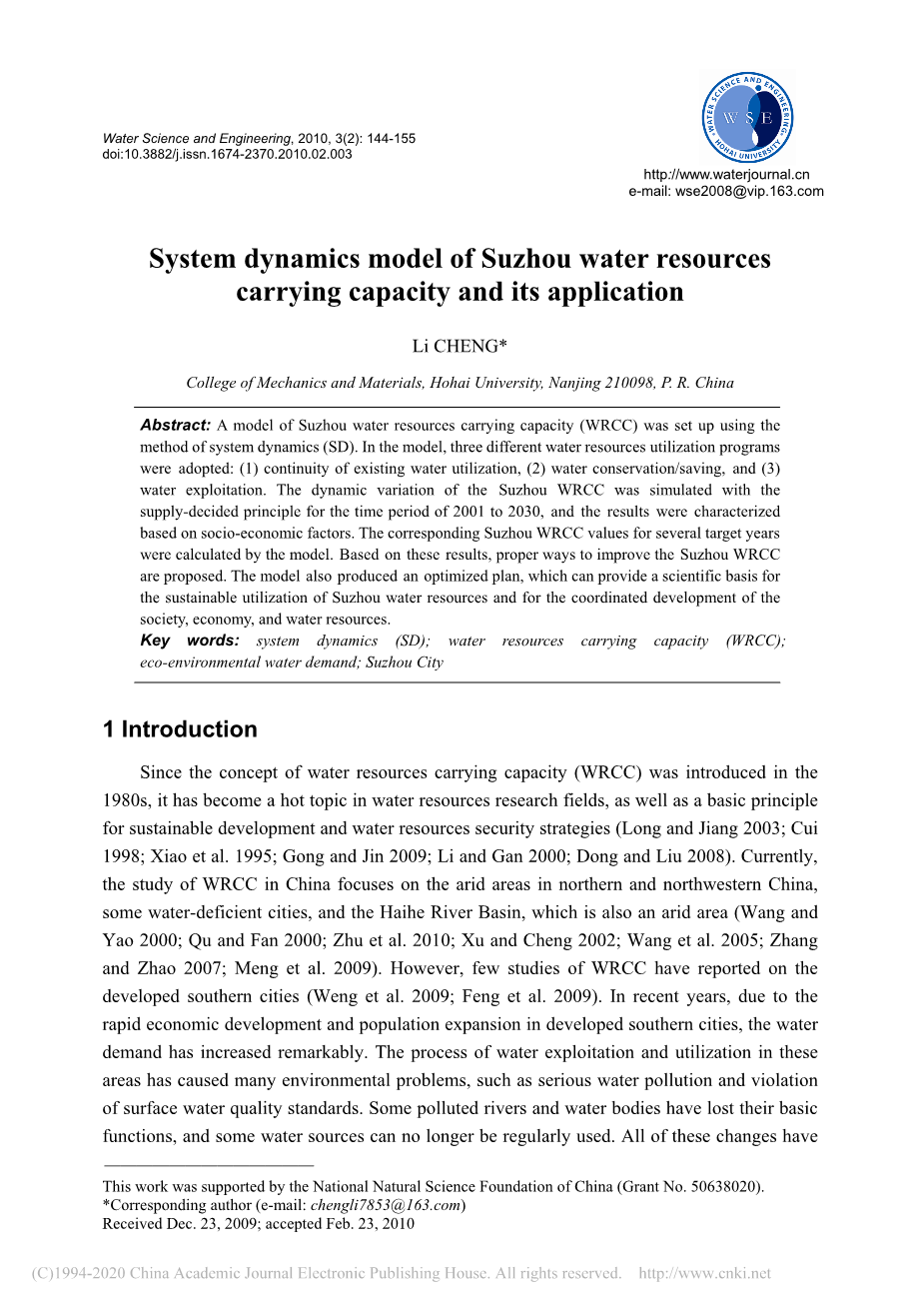 苏州水资源承载力的系统动力学模型及其应用外文翻译资料
