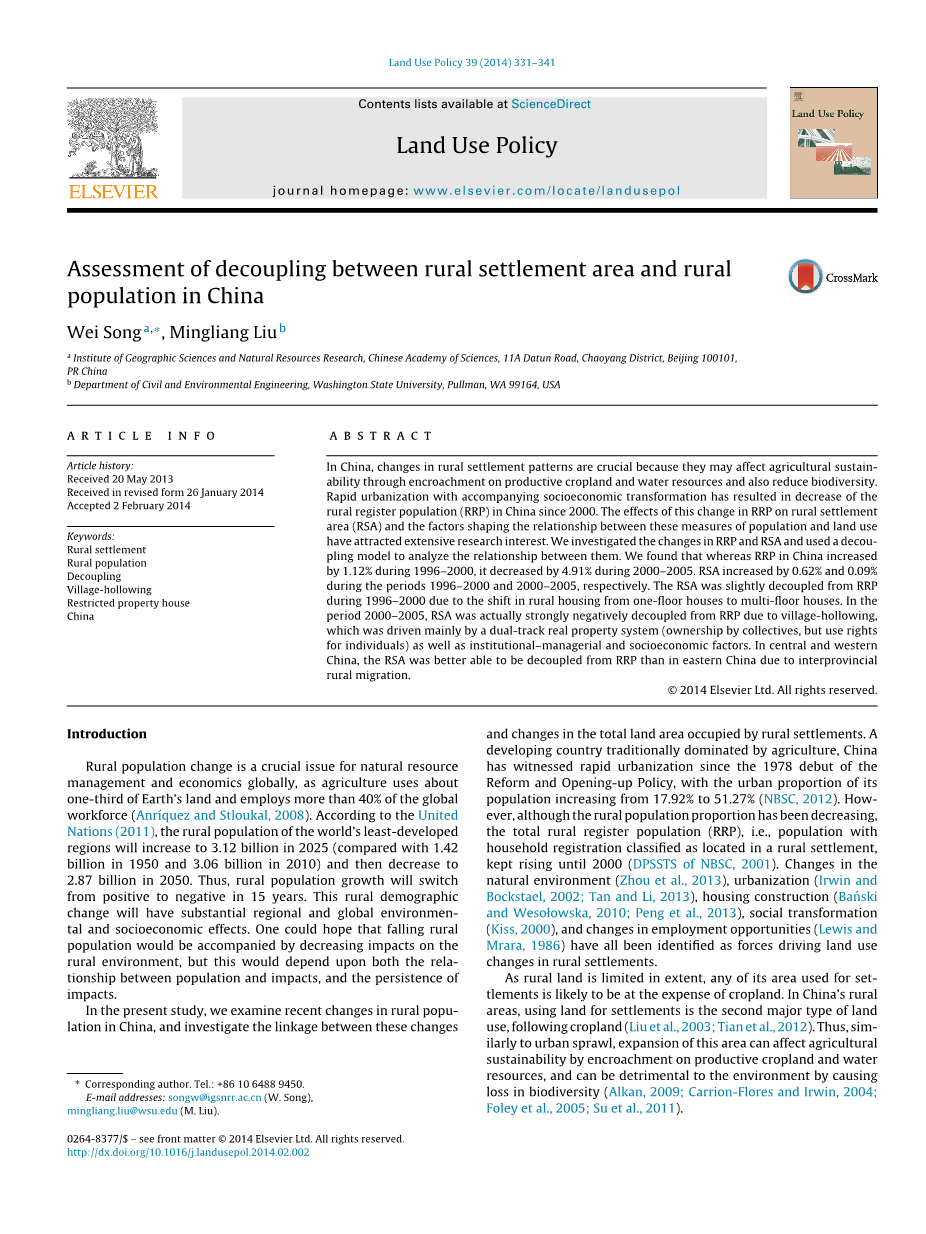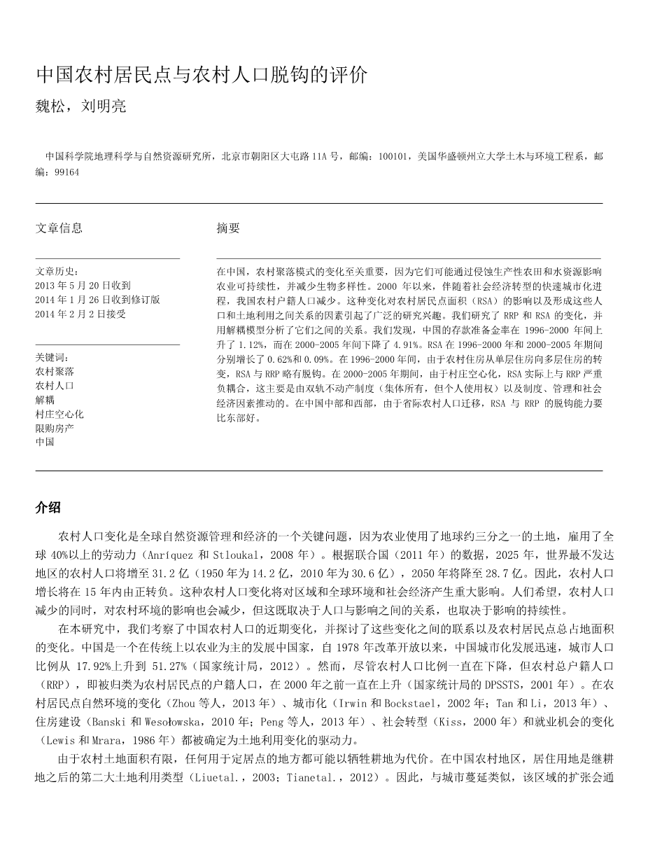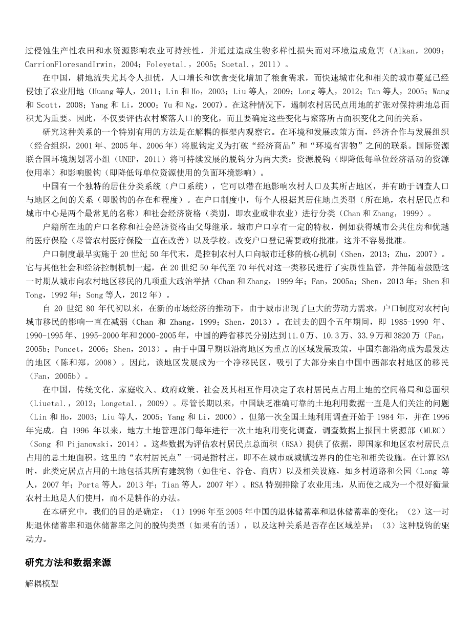 中国农村居民点与农村人口脱钩的评价外文翻译资料