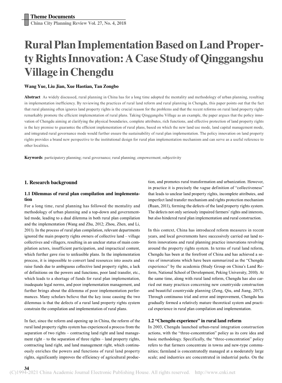 基于土地产权创新的乡村规划实施探究——以成都市青杠树村为例外文翻译资料