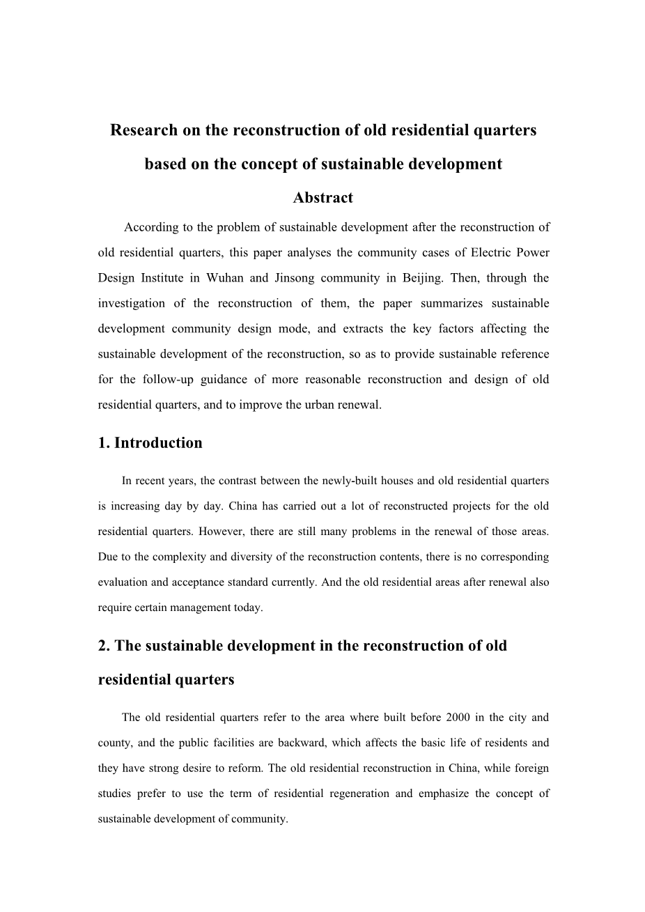 基于可持续发展理念的旧住宅区改造研究外文翻译资料