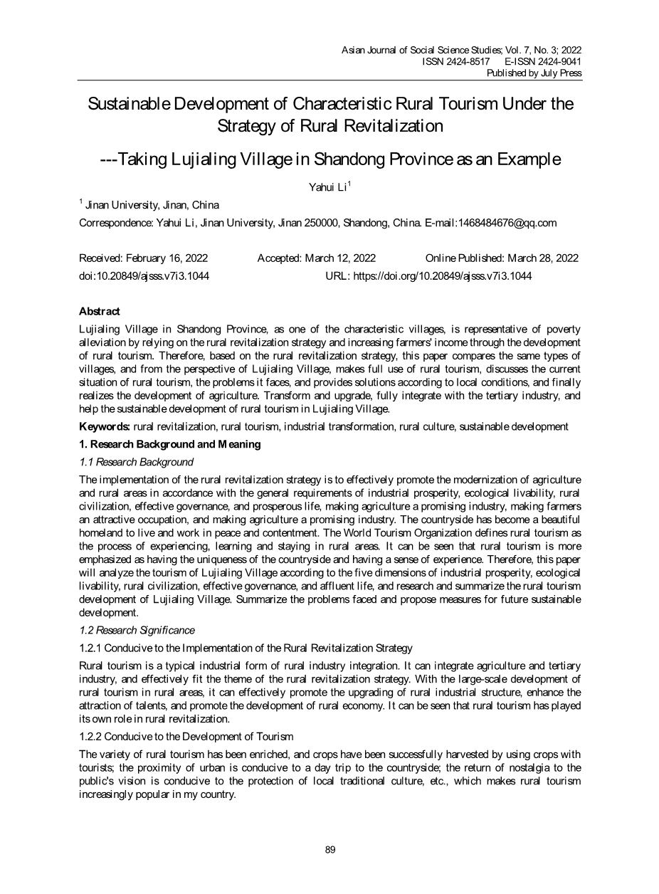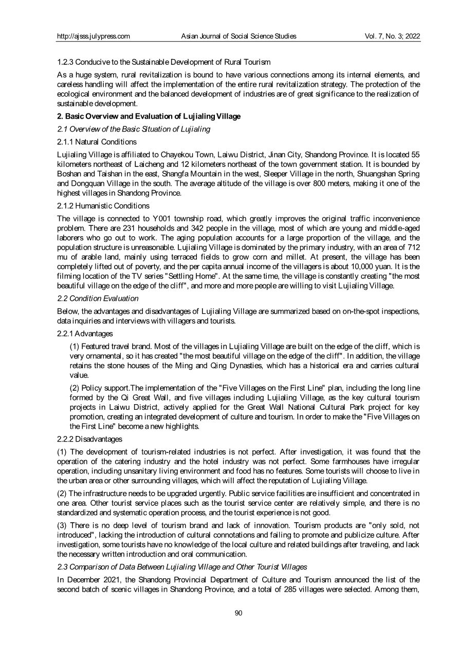 农村振兴战略下特色农村旅游的可持续发展 ---以山东省鲁家岭村为例外文翻译资料