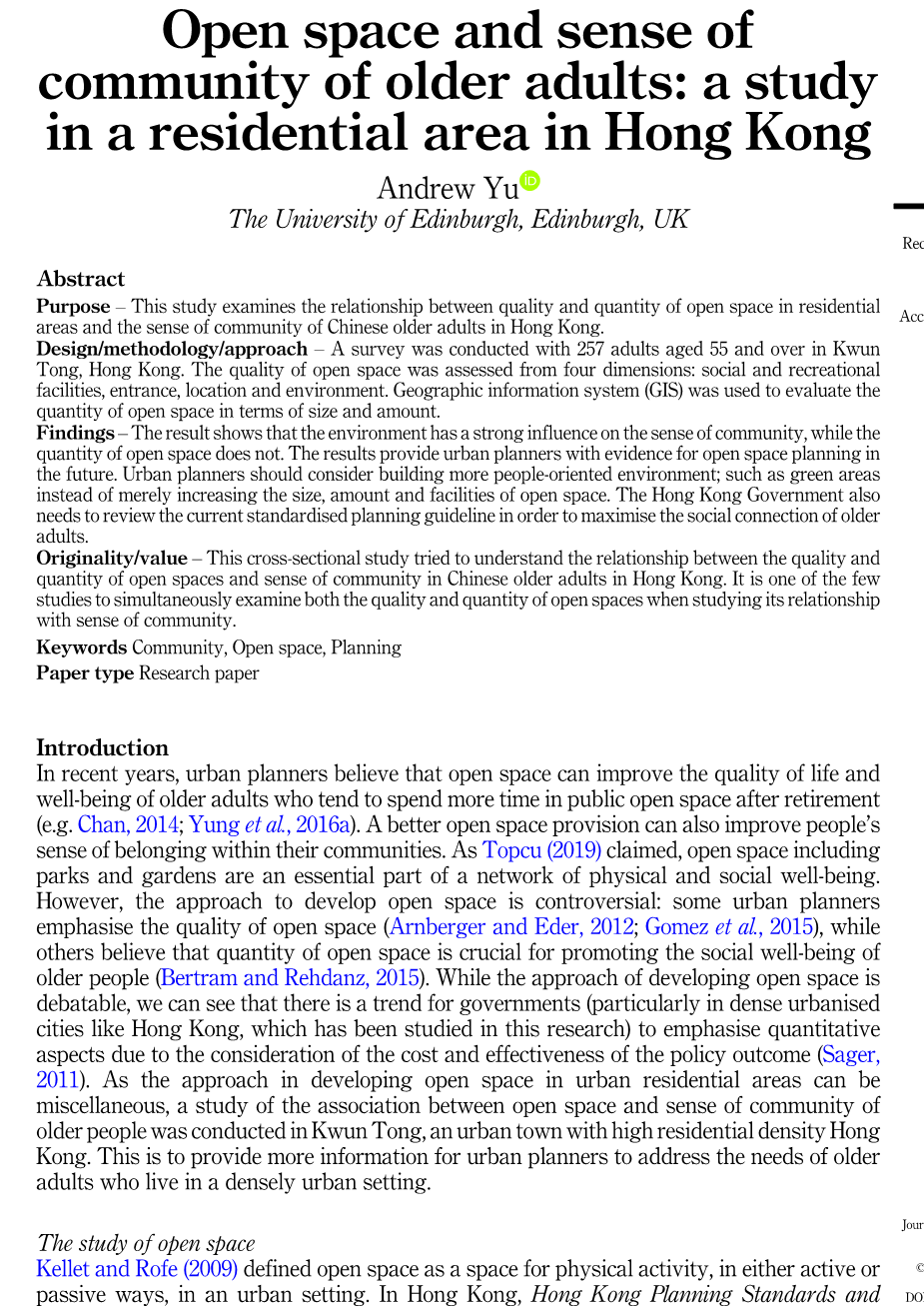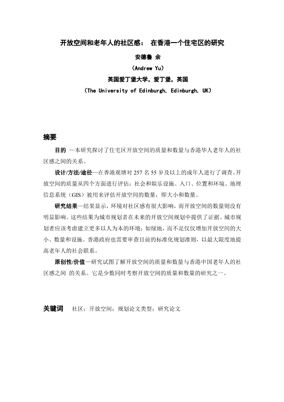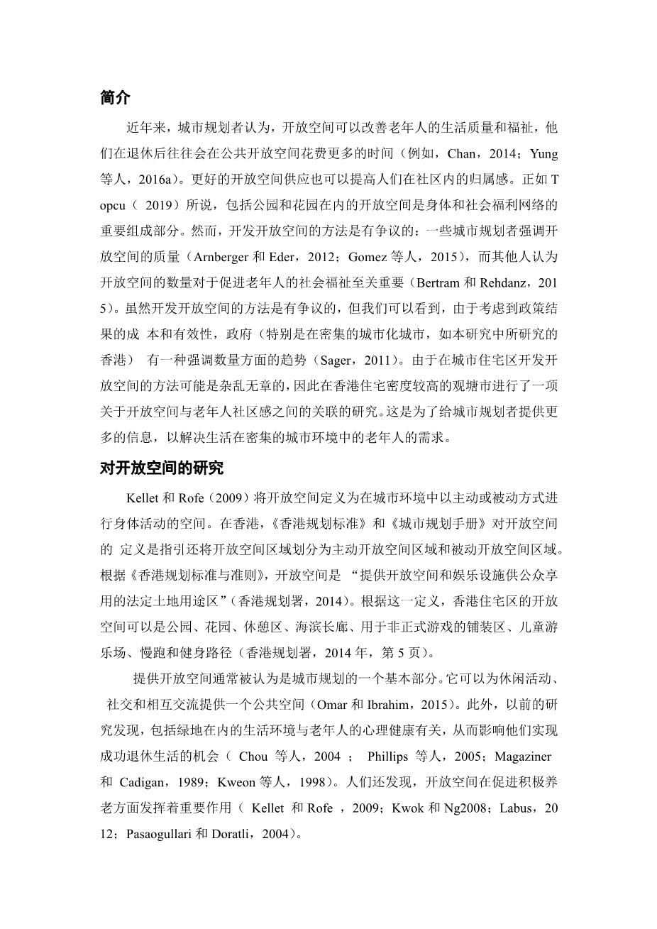 开放空间和老年人的社区感:在香港一个住宅区的研究外文翻译资料
