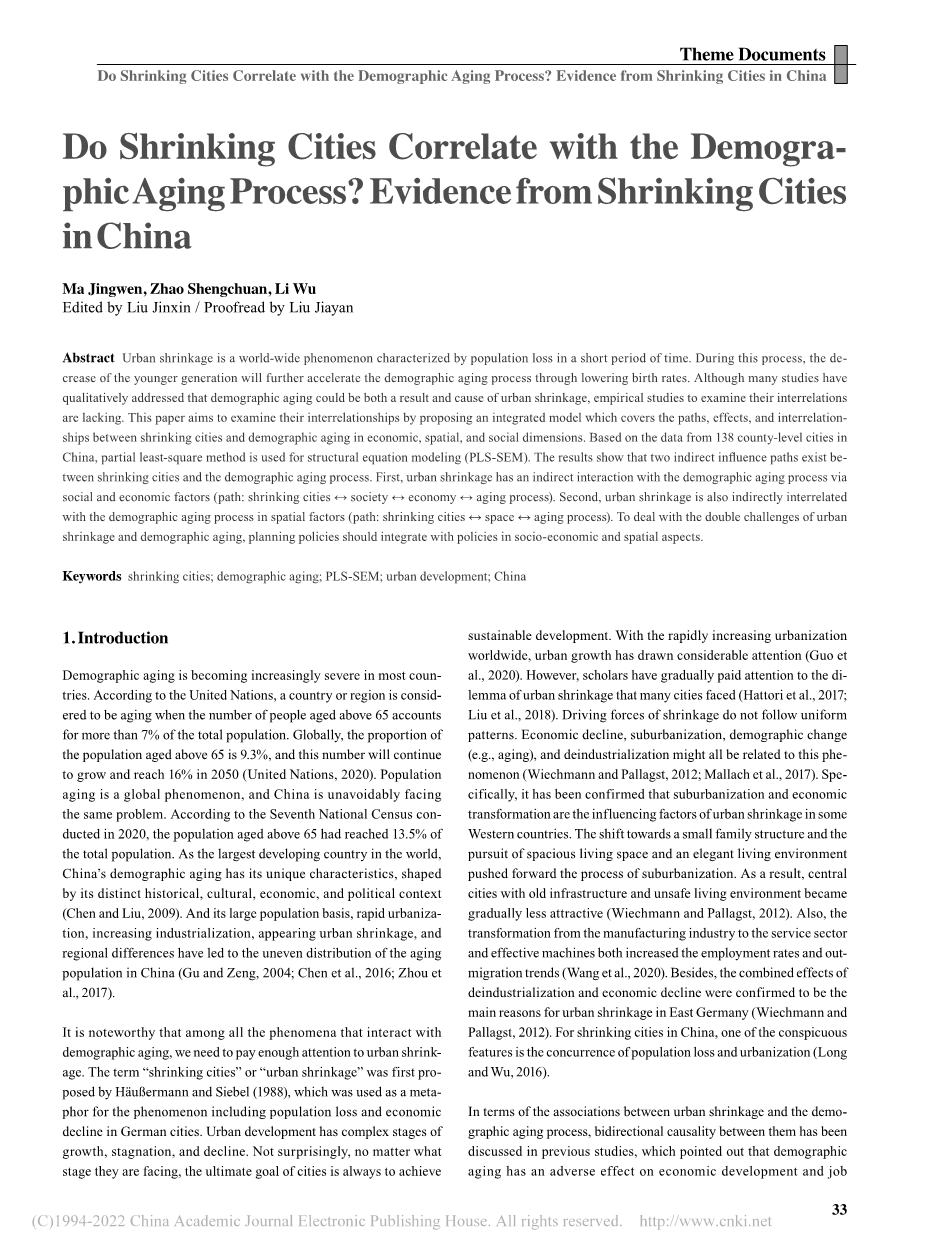 2020).这些发现引起了对它们之间关系的足够的关注,并提供了足够的关键规划意义。然而,目前仍缺乏研究提出一个综合模型来检验城市收缩和人口老龄化之间的相互关系,并确定相关因素。