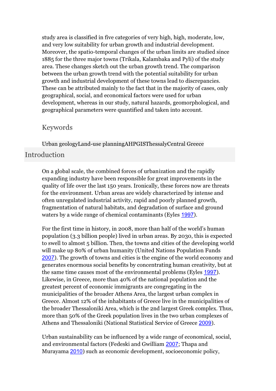 城市可持续发展可以影响广泛的经济、社会和环境因素(fedeski和格威廉2007;塔帕和村山富市2010)如经济发展、社会政策、人口增长、自然环境和自然灾害(Xiao等人。2006;罗佐斯等人。2011)。然而,在规划,开发和管理的城市环境,只有经济和社会参数通常考虑到。因此,在脆弱的地方,如地区呈现陡峭的斜坡和/或退化的土壤,经常发生自然灾害,如滑坡、地震、洪水可以造成广泛的破坏,对社会和经济的网络中断,导致人类生命和财产的损失。