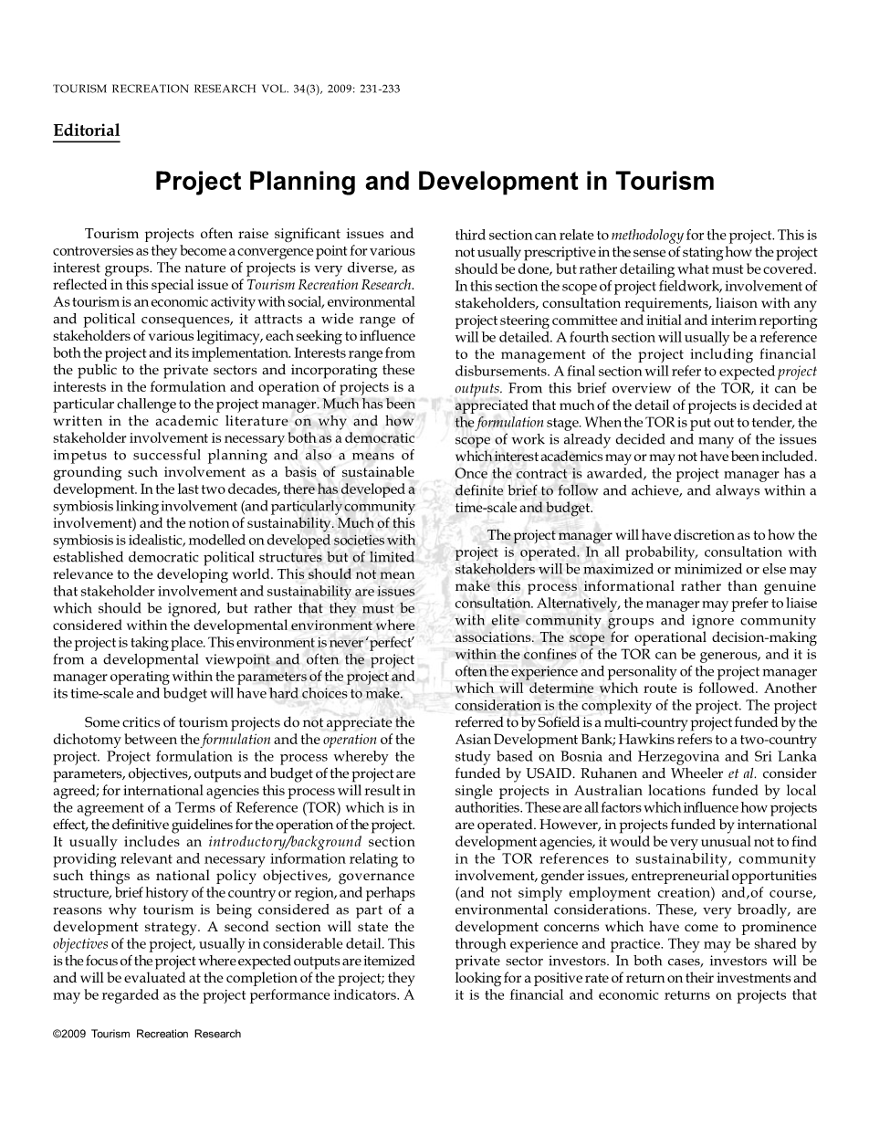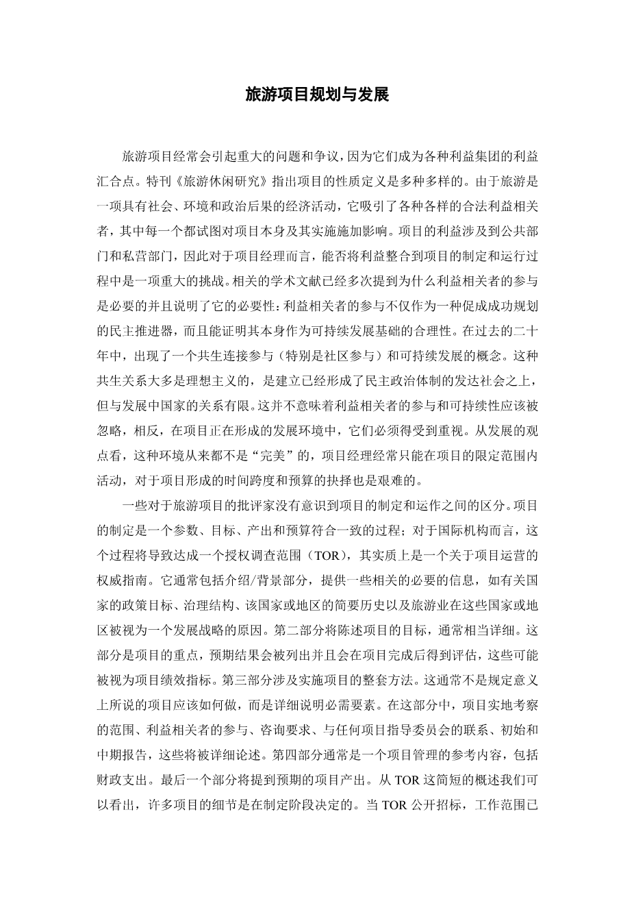 旅游项目规划与发展外文翻译资料