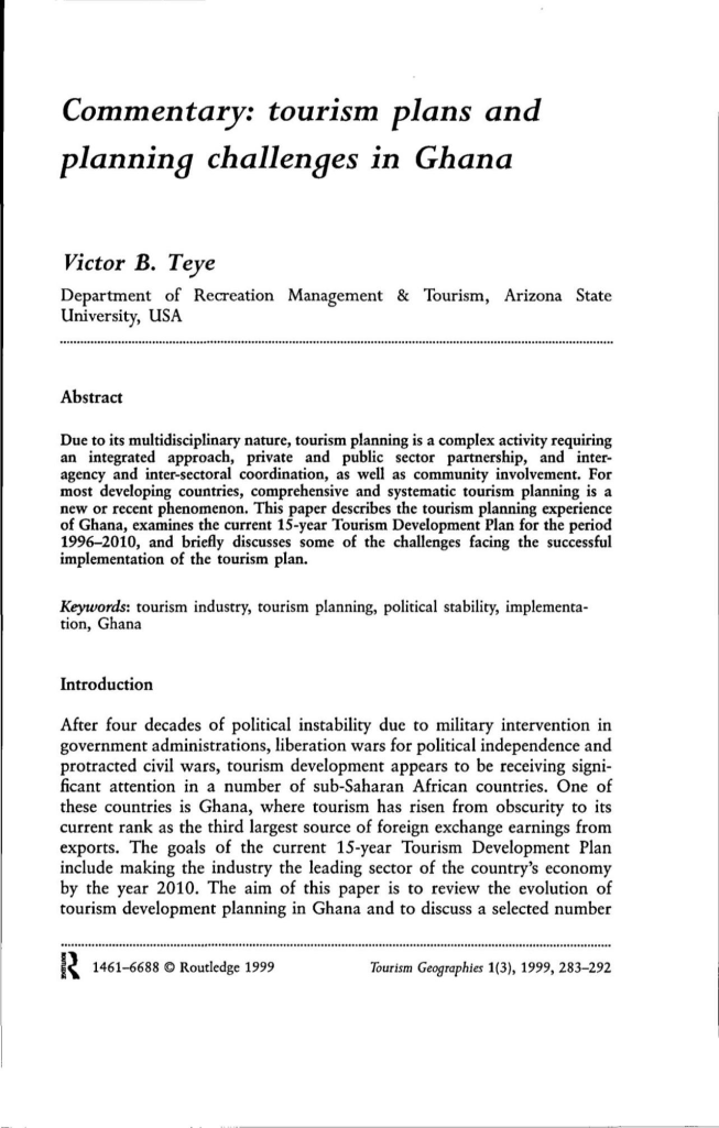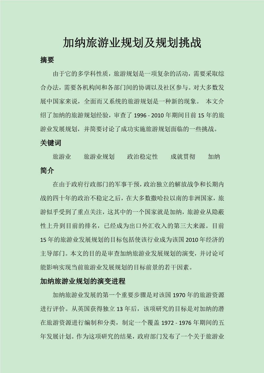 加纳旅游业规划及规划挑战外文翻译资料