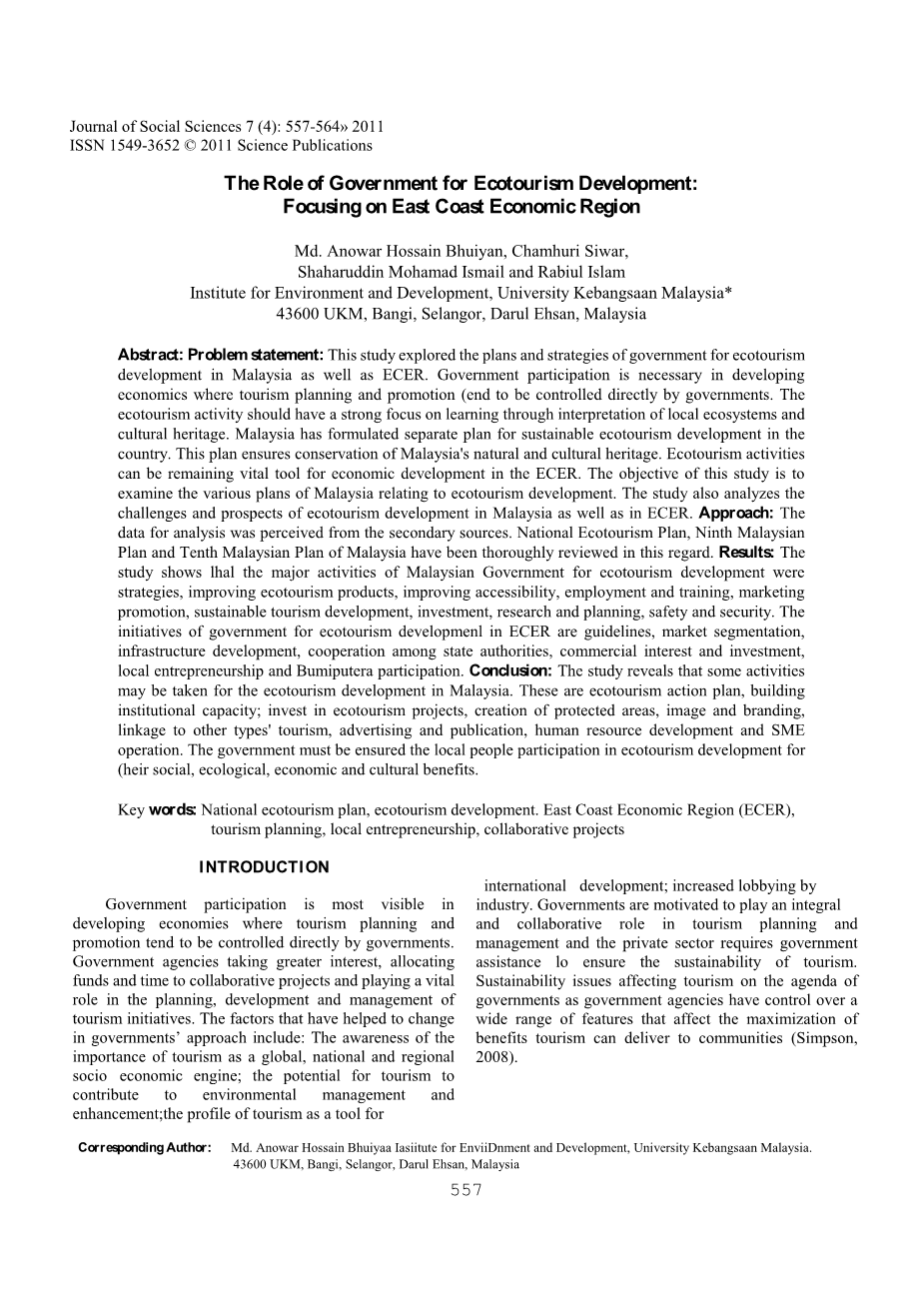 政府在生态旅游开发中的作用——以东海岸经济区为例外文翻译资料