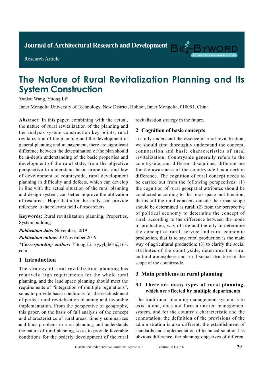 乡村振兴规划的本质及其体系建设外文翻译资料