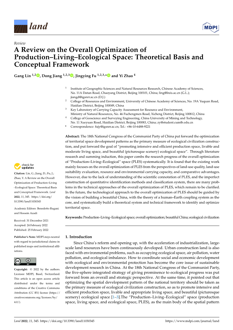 生产-生活-生态空间整体优化研究述评:理论基础与概念框架外文翻译资料