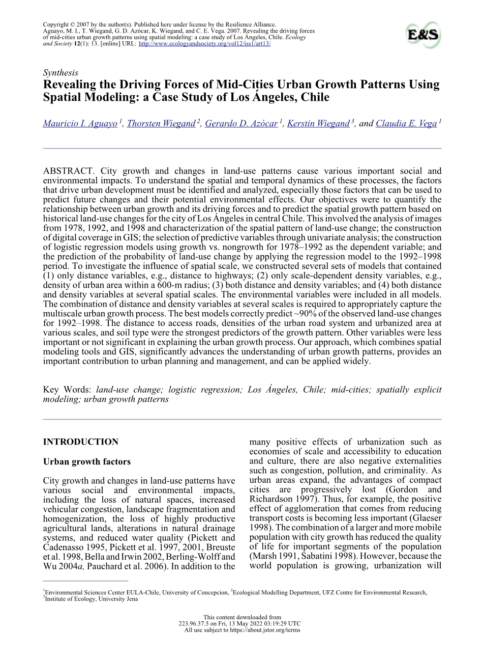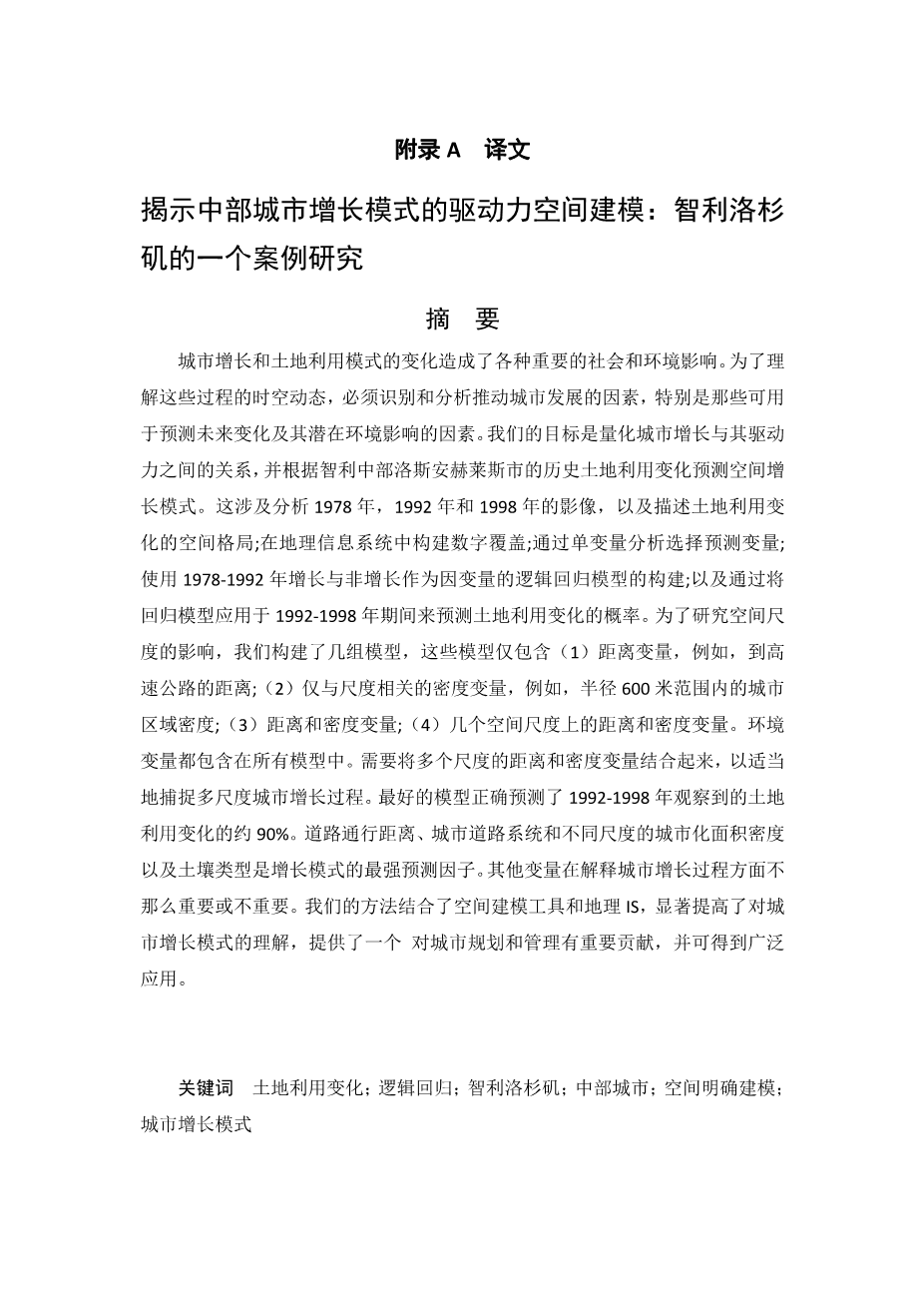 揭示中部城市增长模式的驱动力空间建模:智利洛杉矶的一个案例研究外文翻译资料