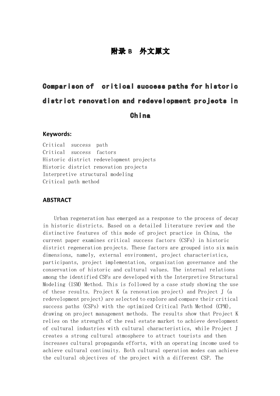 中国历史街区改造与再开发关键成功路径比较外文翻译资料