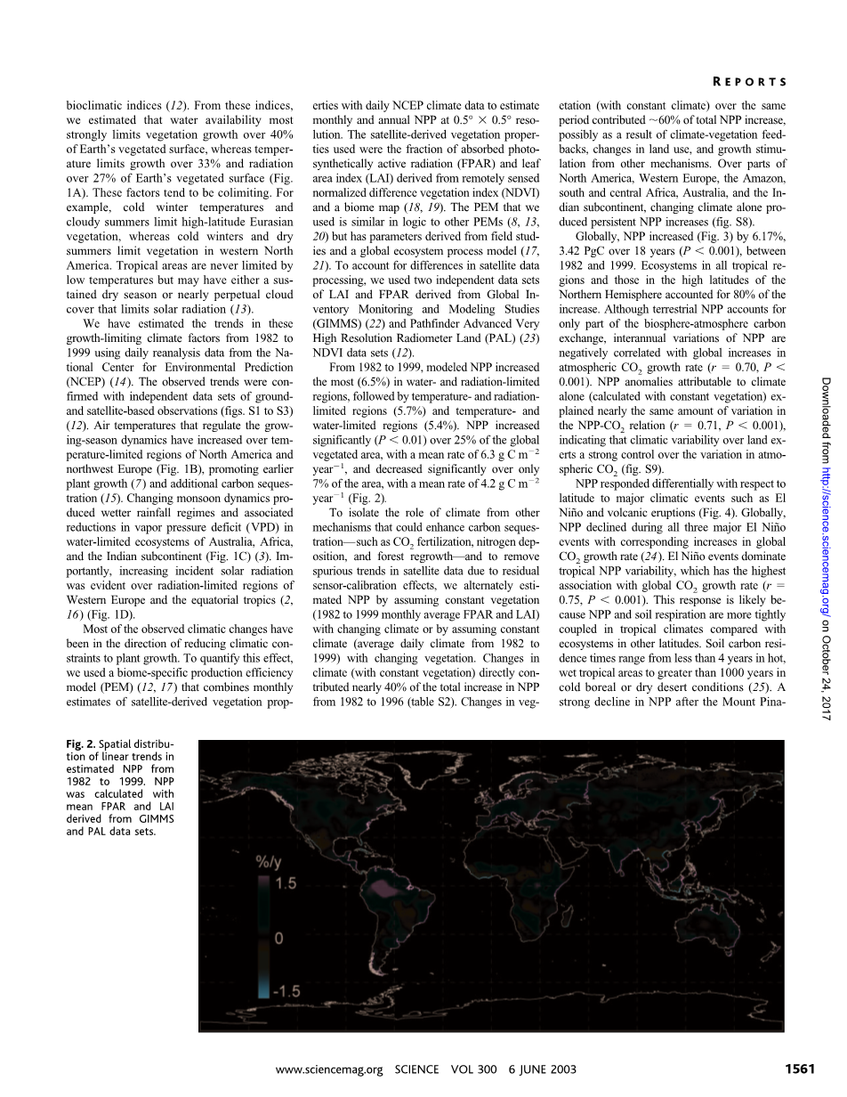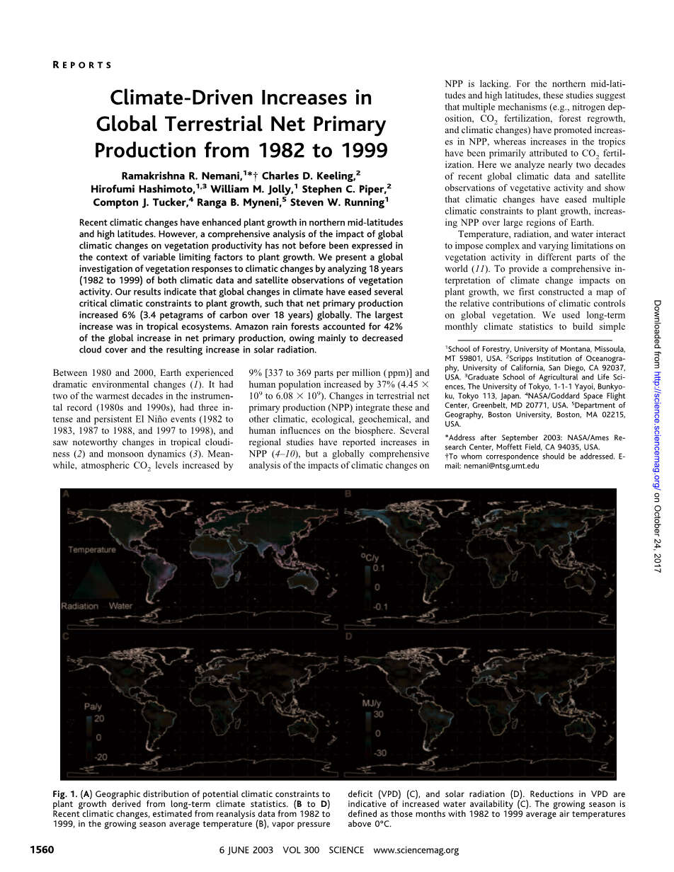Ramakrishna R. Nemani,1*dagger; Charles D. Keeling,2Hirofumi Hashimoto,1,3 William M. Jolly,1 Stephen C. Piper,2Compton J. Tucker,4 Ranga B. Myneni,5 Steven W. Running1