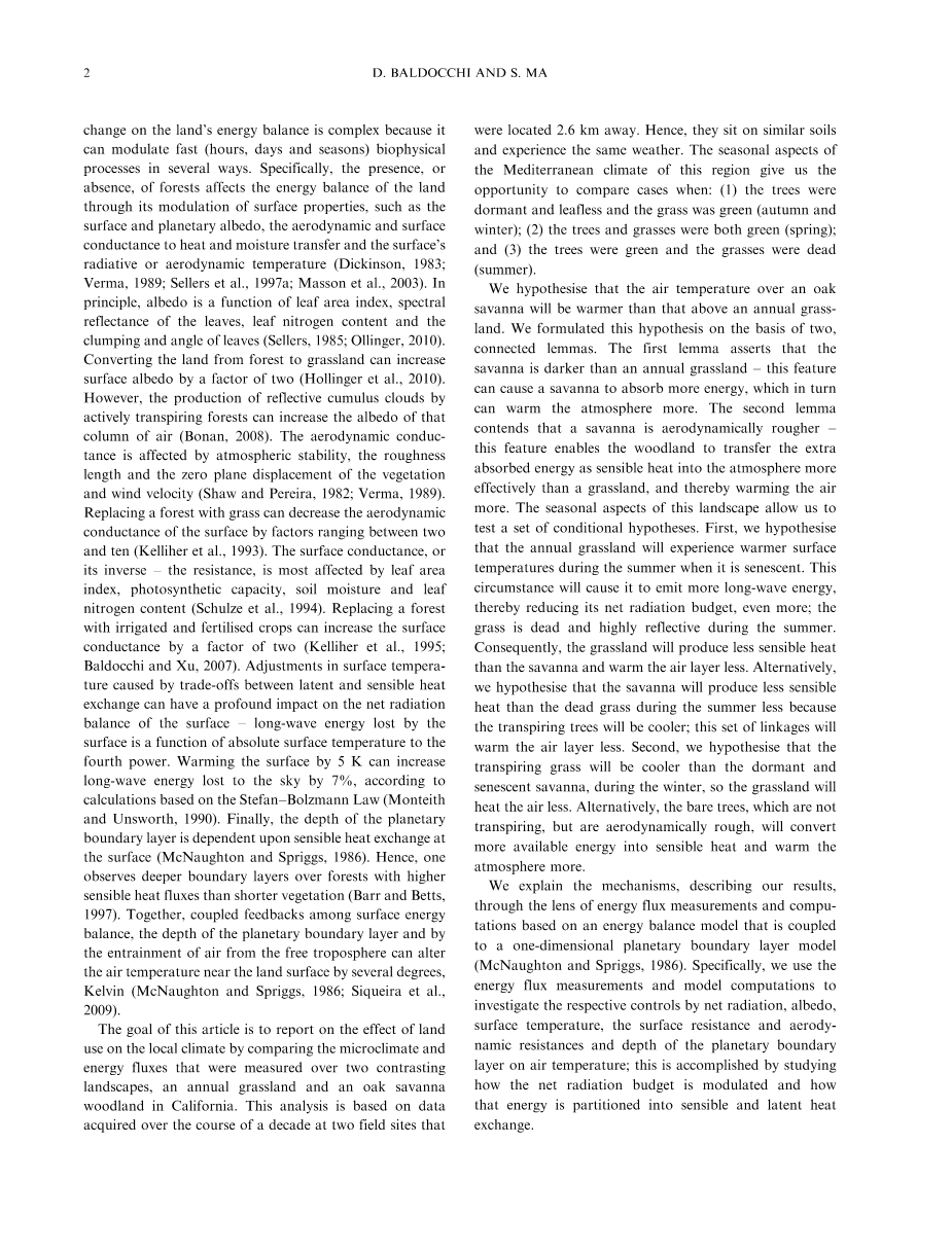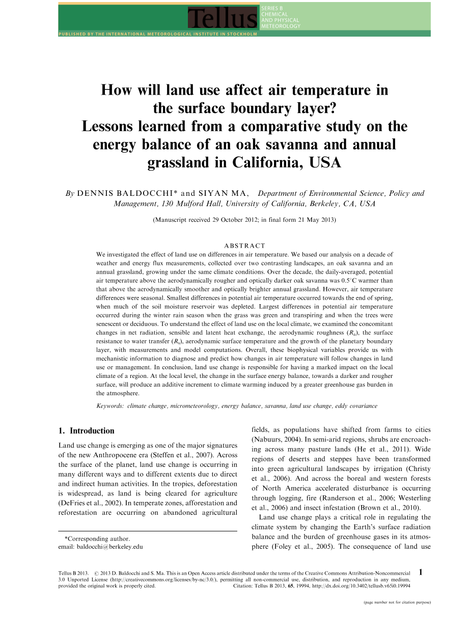 原文标题:How will land use affect air temperature in the surface boundary layer ? Lessons learned from a comparative study on the energy balance of an oak savanna and annual grassland in California, USA