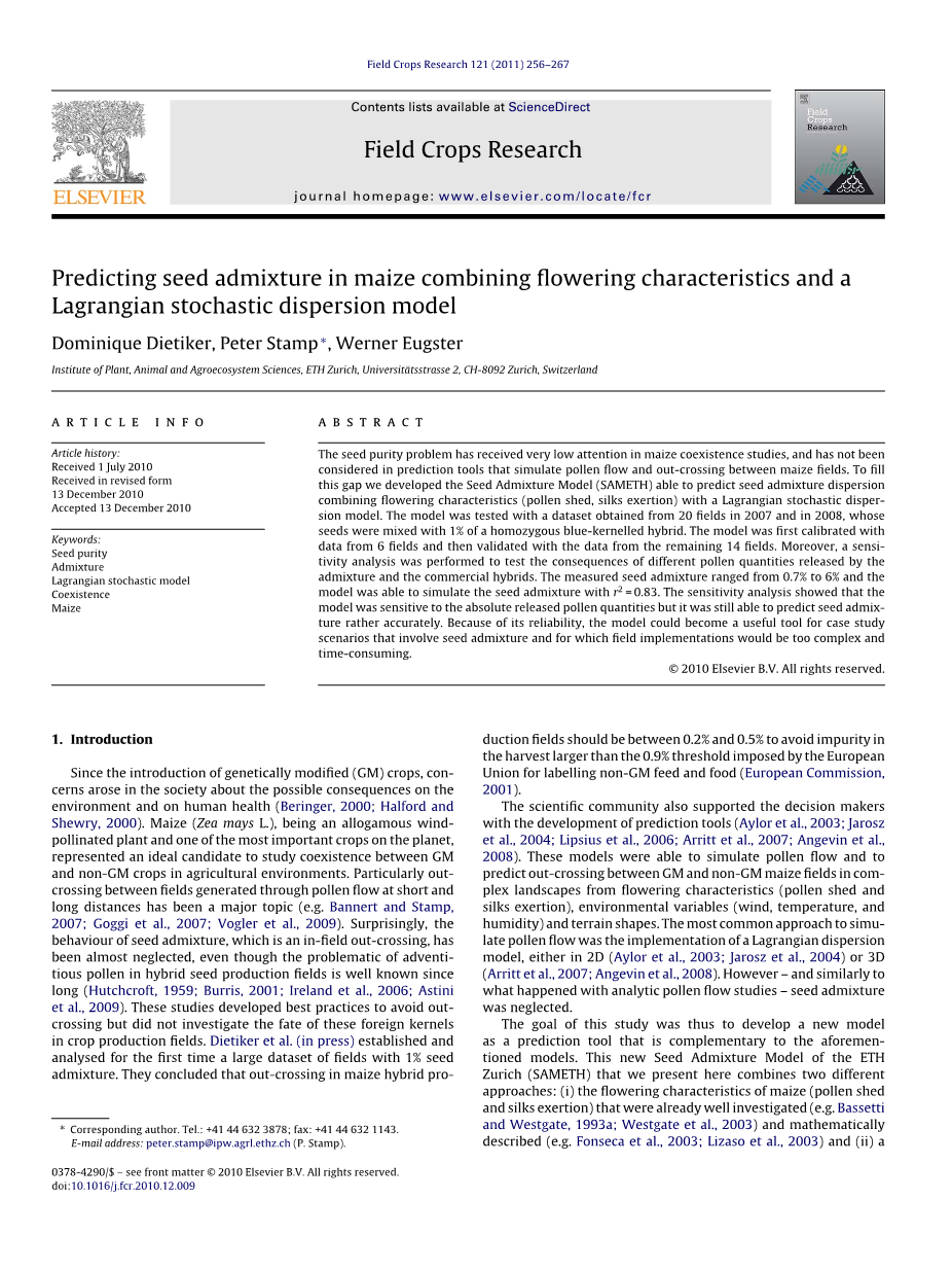 原文标题 predicting seed admixture in maize combining flowering characteristics and a lagrangian stochastic dispersion model