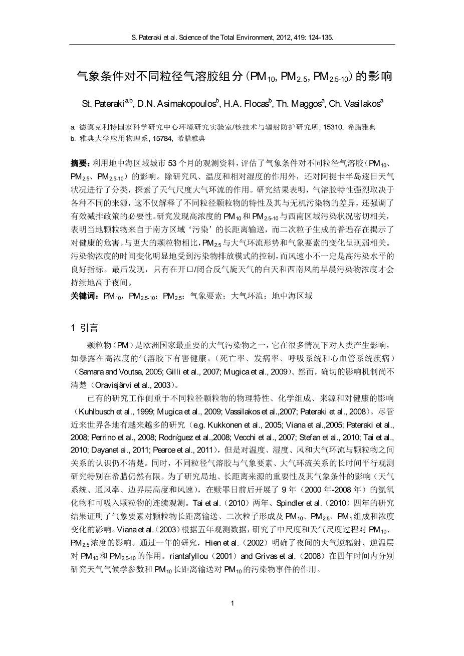 气象条件对不同粒径气溶胶组分(PM 10, PM2.5, PM2.5-10) 的影响外文翻译资料
