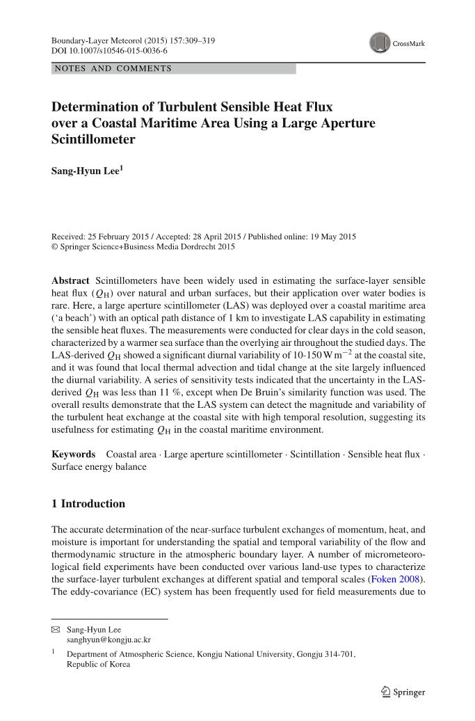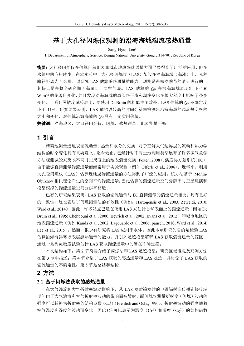 基于大孔径闪烁仪观测的沿海海域湍流感热通量外文翻译资料