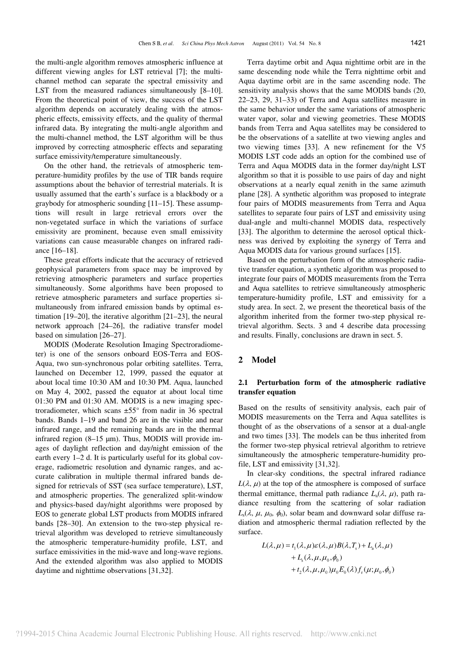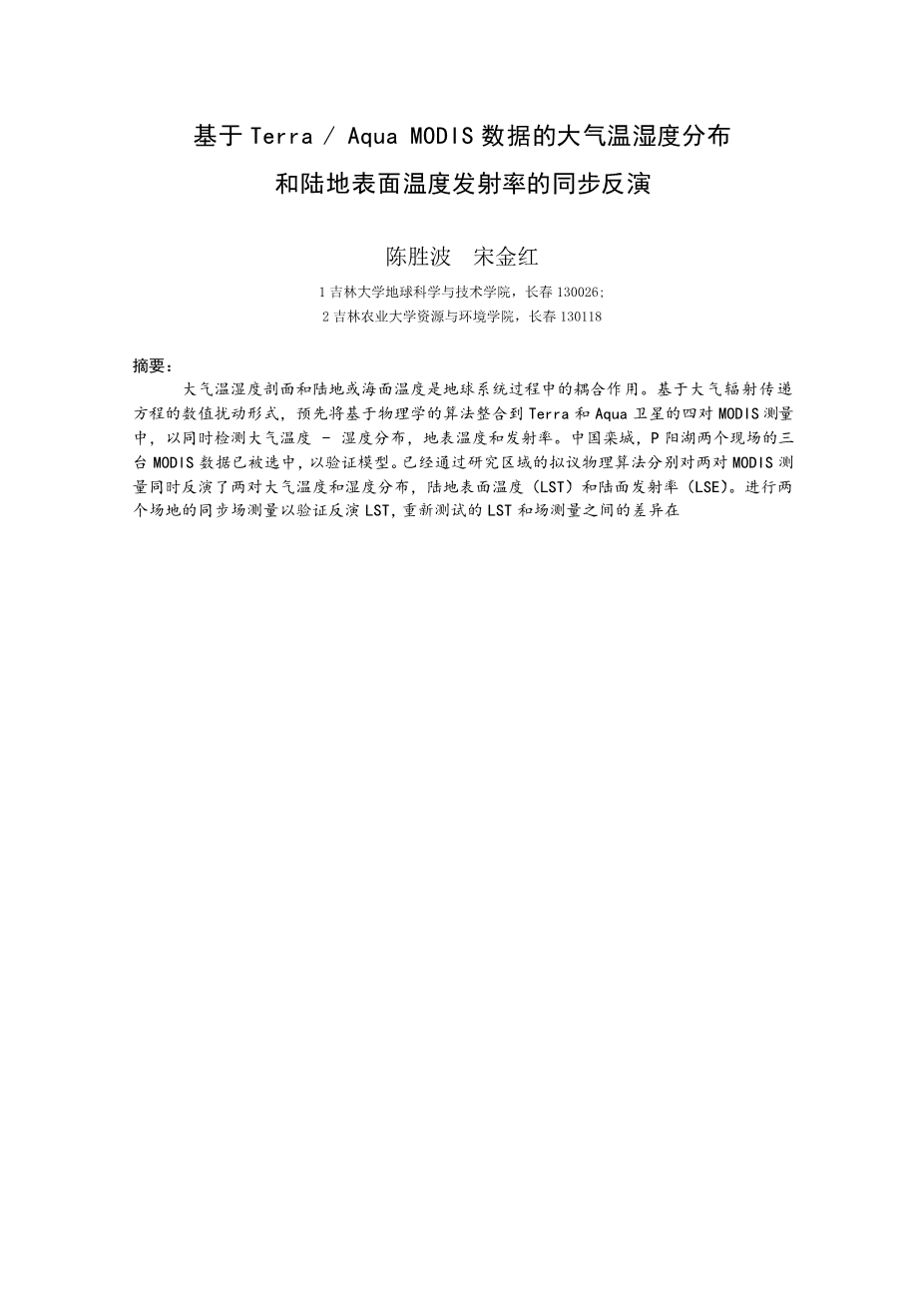 基于Terra / Aqua MODIS数据的大气温湿度分布和陆地表面温度发射率的同步反演外文翻译资料