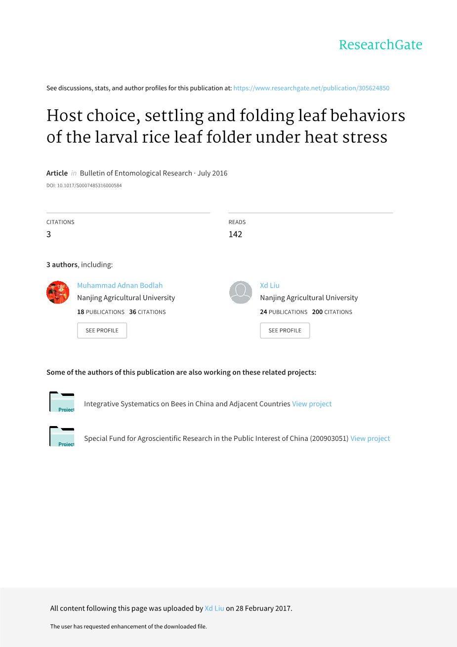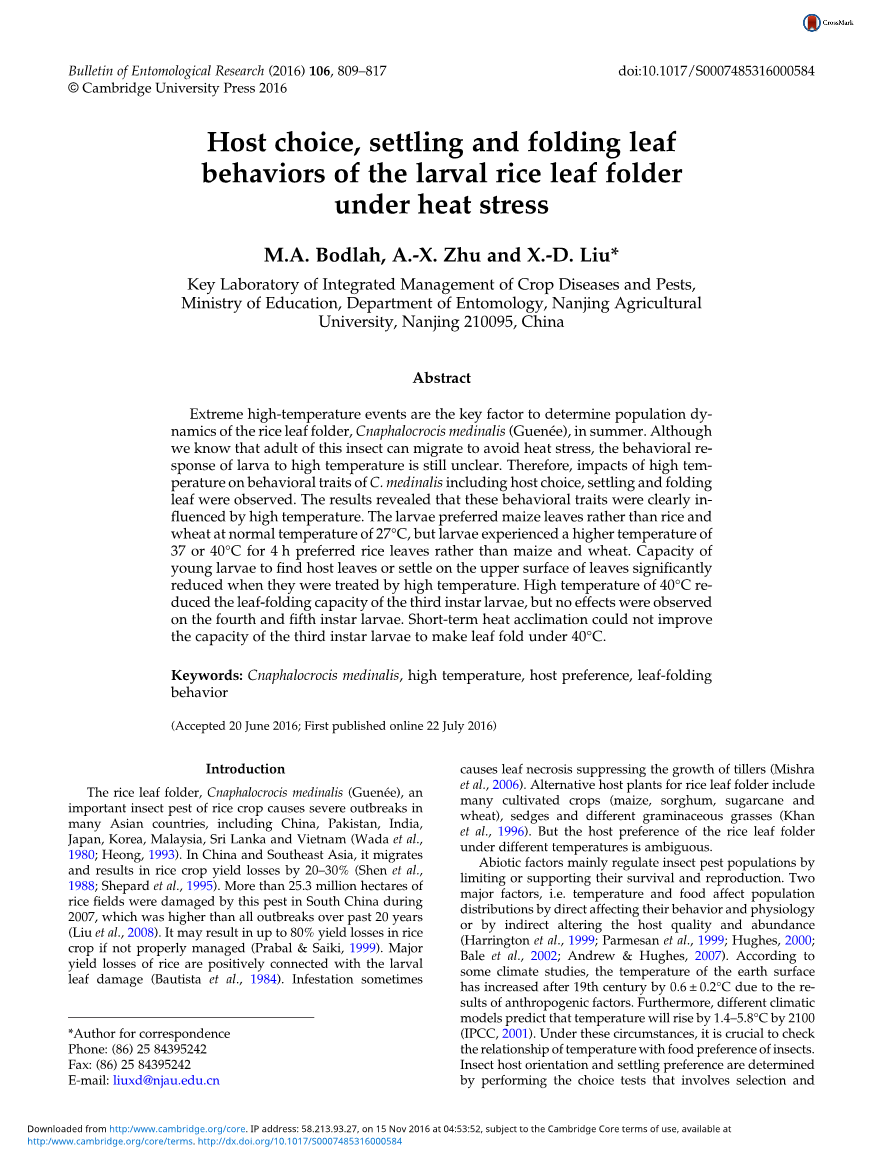 在热应力作用下,稻纵卷叶螟宿主选择、栖息和折叶片的 行为外文翻译资料