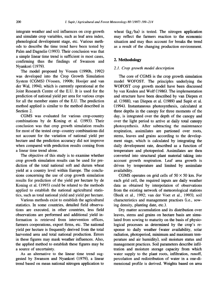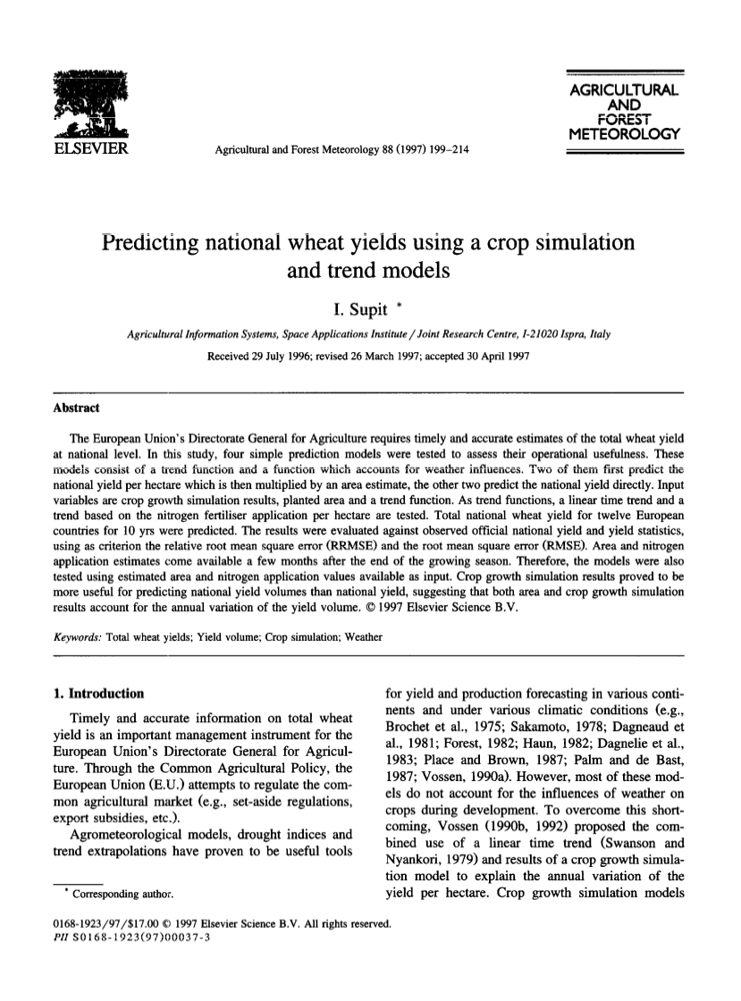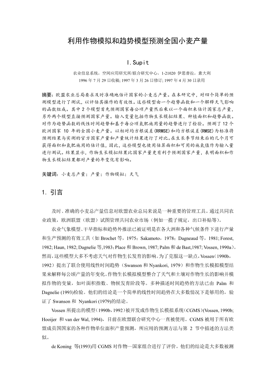 利用作物模拟和趋势模型预测全国小麦产量外文翻译资料