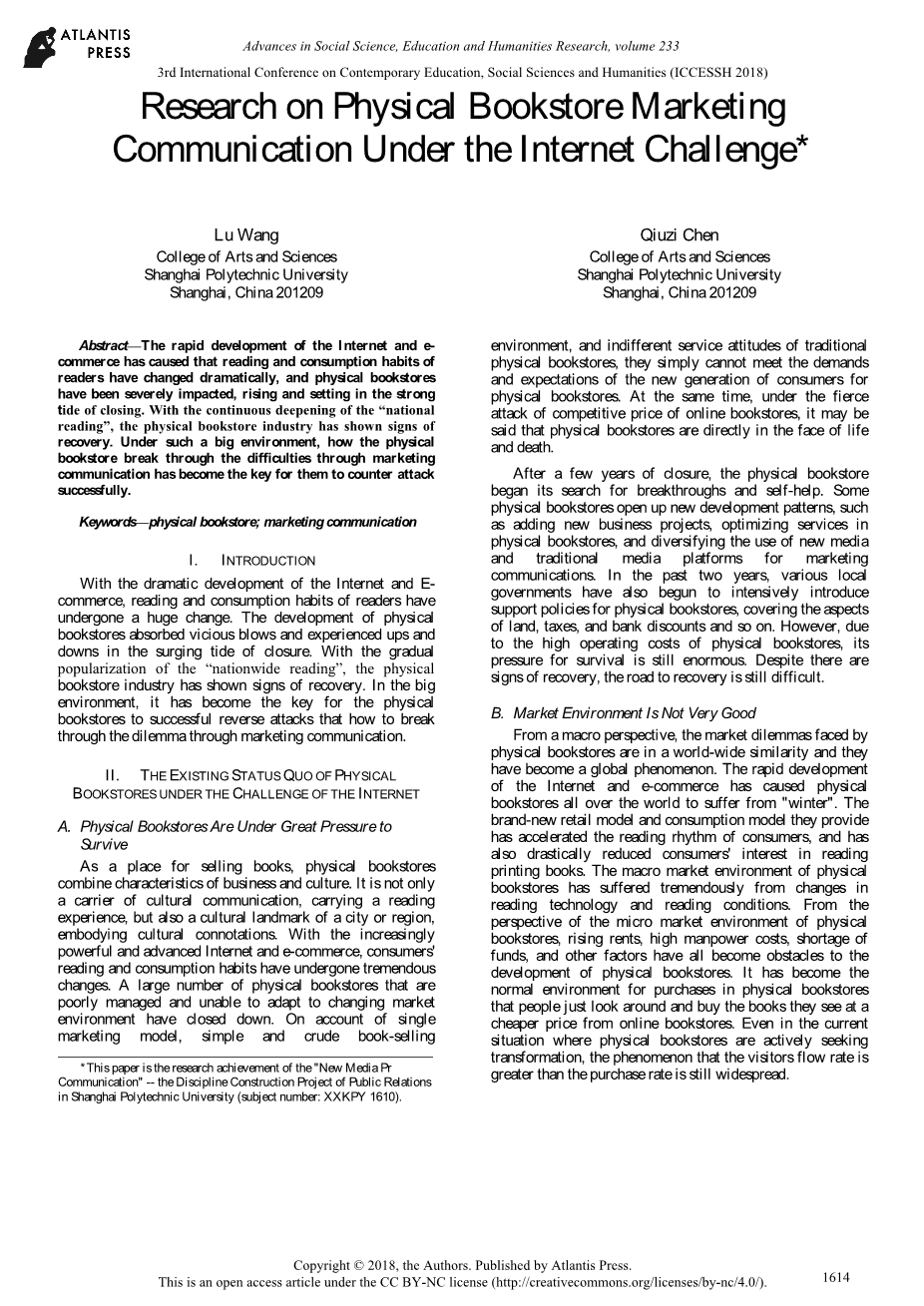 互联网挑战下的实体书店营销传播研究*外文翻译资料