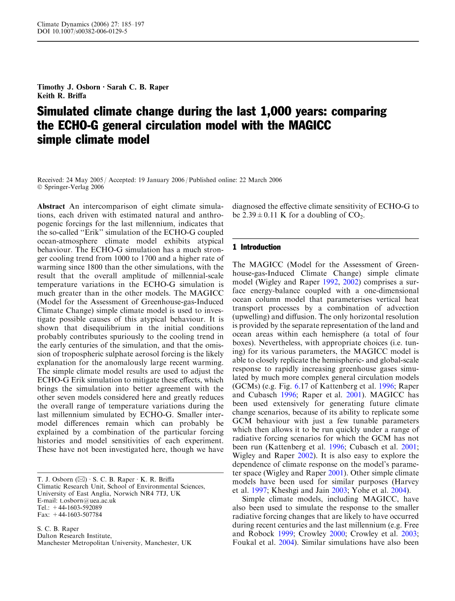 Timothy J. Osborn AElig; Sarah C. B. Raper Keith R. Briffa
