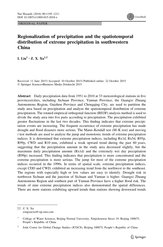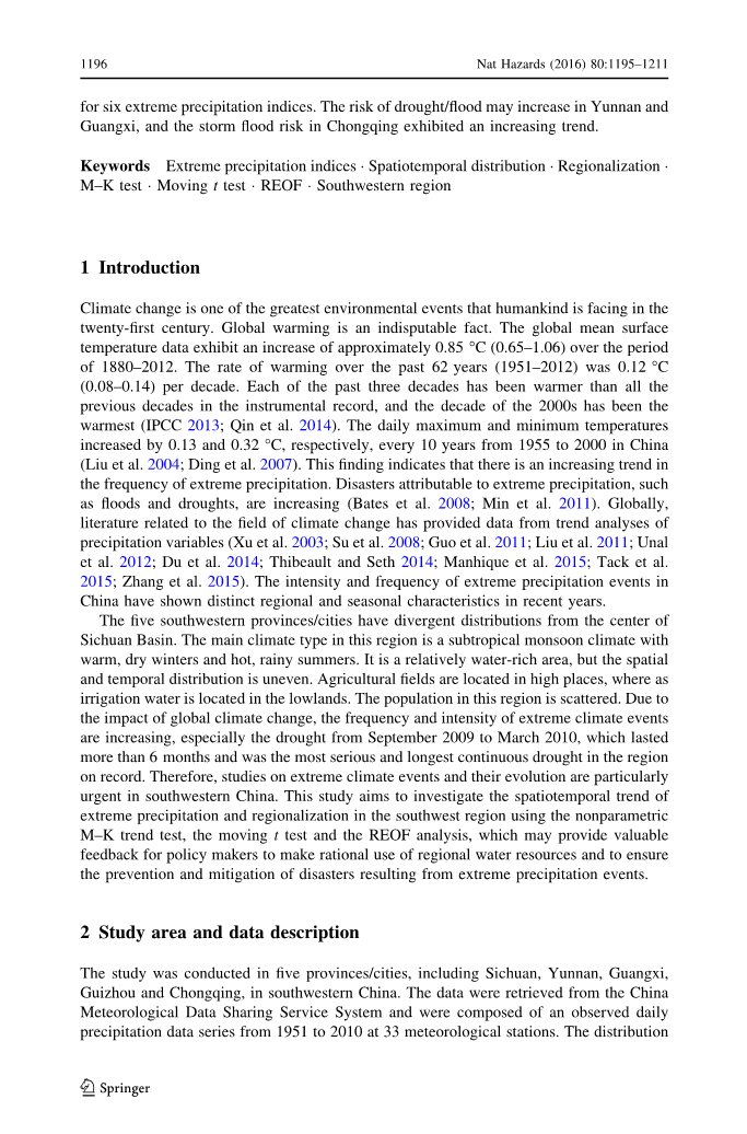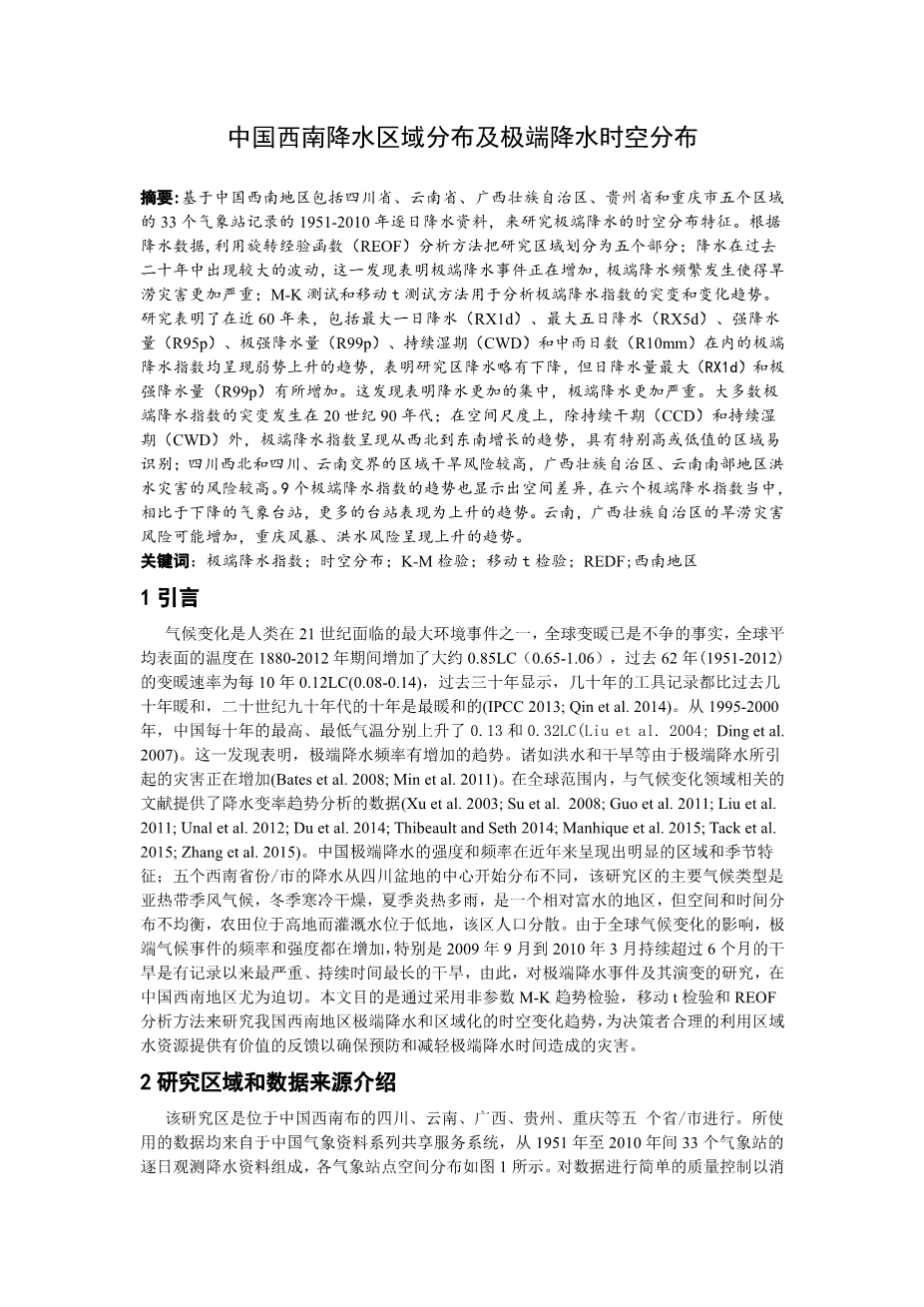中国西南降水区域分布及极端降水时空分布外文翻译资料