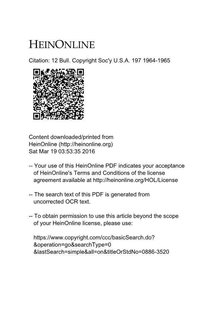 它只适用于法定许可,应当允许复制发表文学和戏剧作品的副本,并允许像这样的部分副本的制作工作,它并不打算授予任何其他有权使用这些作品的人。复制对是否应该或者可以相当适用于绘画、插画、地图和其他图形材料不被认为是在备忘录中的。这些特殊的问题涉及作品出版每一页的高成本和复制几页的影响,未来学习分组的需要。