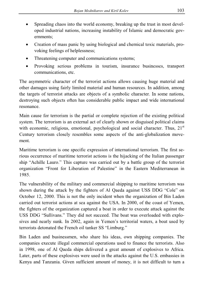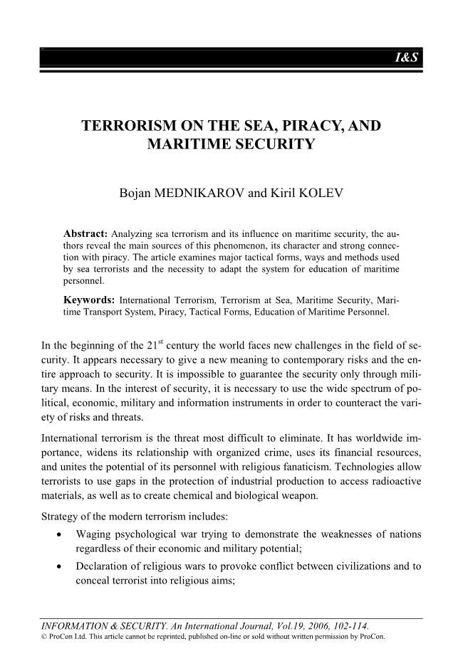 TERRORISM ON THE SEA, PIRACY,AND MARITIME SECURITY