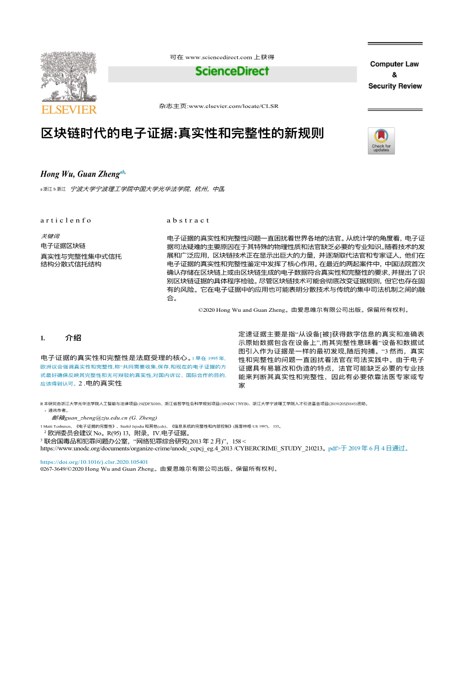 区块链时代的电子证据:真实性和完整性的新规则外文翻译资料