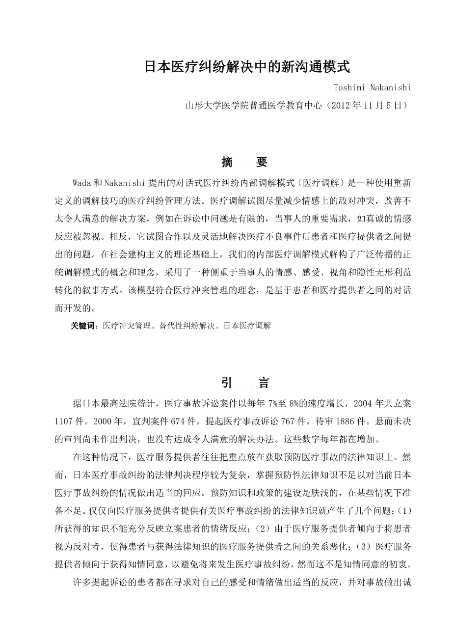 日本医疗纠纷解决中的新沟通模式外文翻译资料