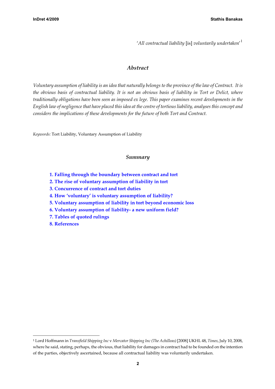 英国法上的侵权责任自愿承担:一个悖论?外文翻译资料