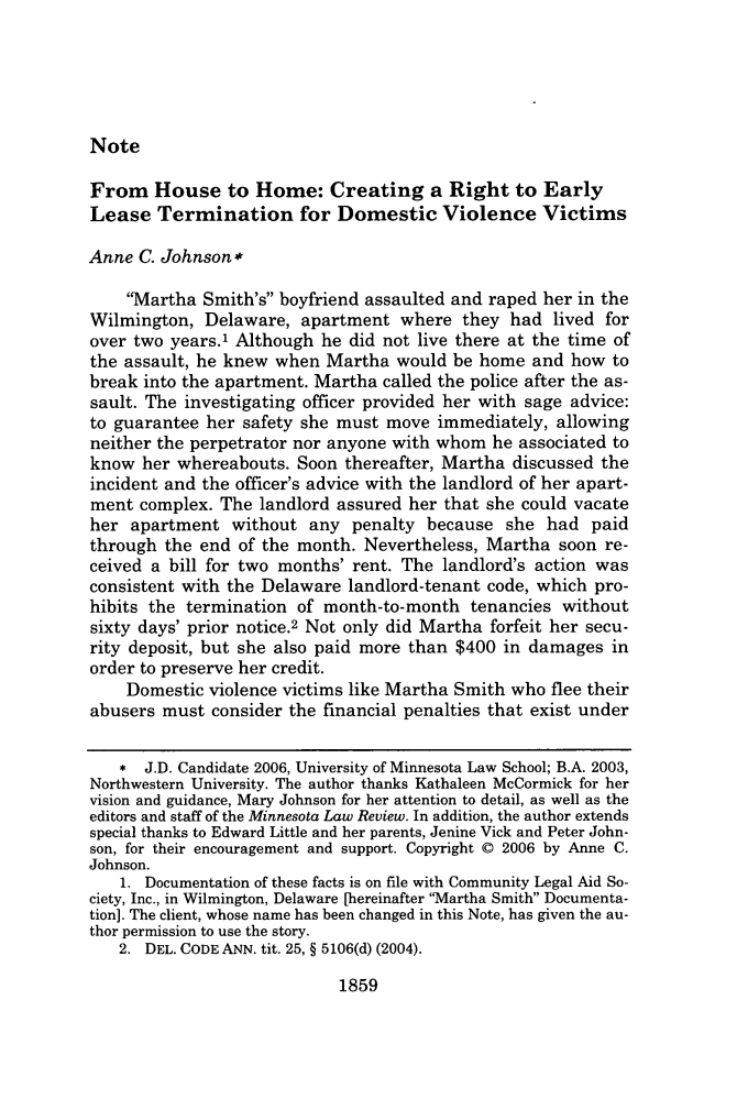 从房子到家 ——为家庭暴力受害者创造提前终止租约的权利外文翻译资料