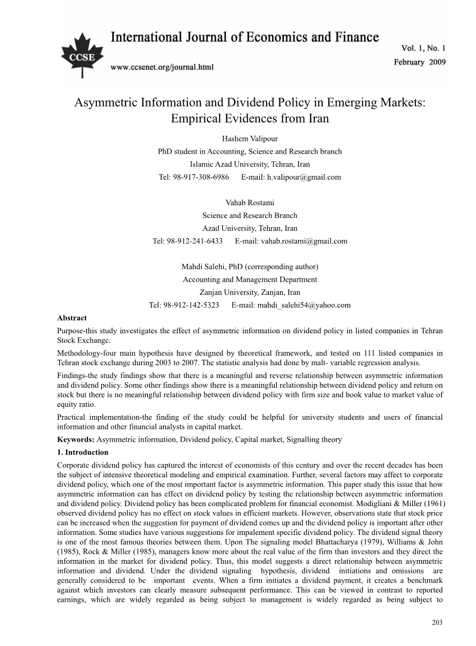 新兴市场的信息不对称与股利政策:来自伊朗的经验证据