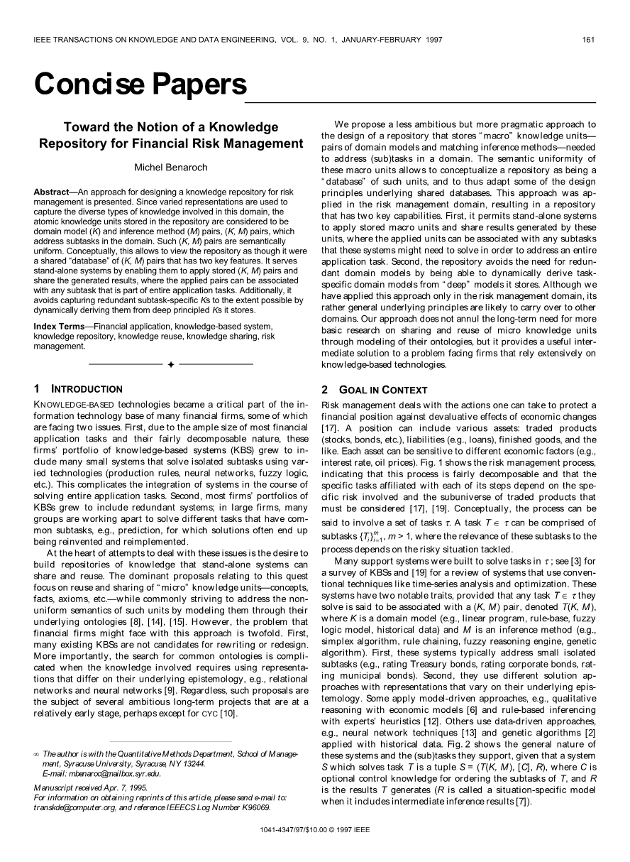关键词:金融应用程序,以知识为基础的系统,知识库,知识重用,知识共享,风险管理。