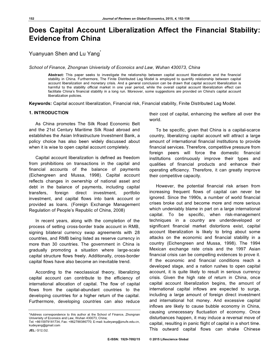 关键词:资本账户自由化,金融风险,金融稳定,有限分布滞后模型。