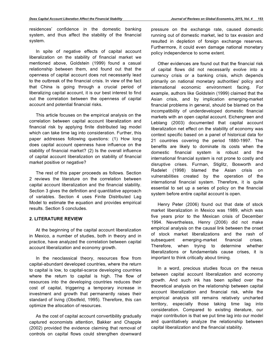 本文的其余部分如下。第2章回顾了资本账户开放与金融稳定相关性的文献。第3章给出了可变因素的定义和定量方法。第4章采用有限分布滞后模型估计方程,并提供实证结果。第5章总结。