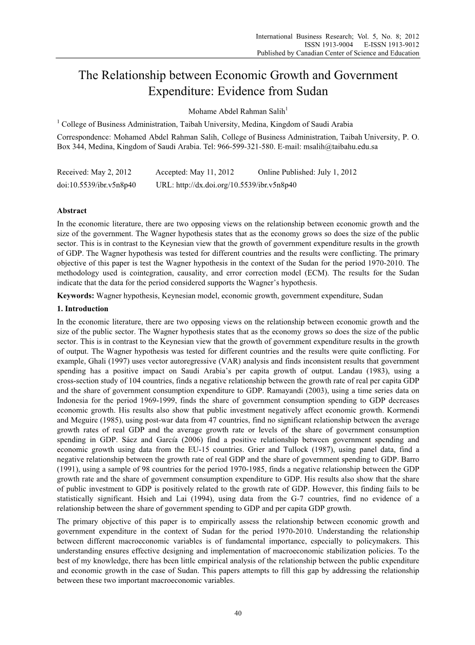 经济增长与政府支出的关系:来自苏丹的证据外文翻译资料