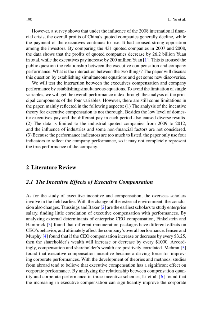 关键词:联立方程模型;主成分分析;高管薪酬;企业绩效