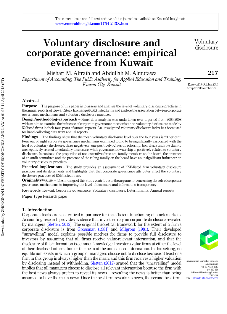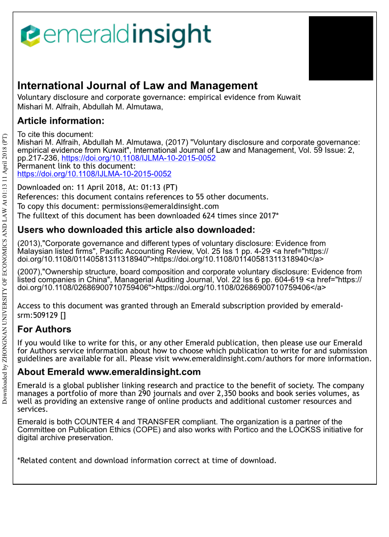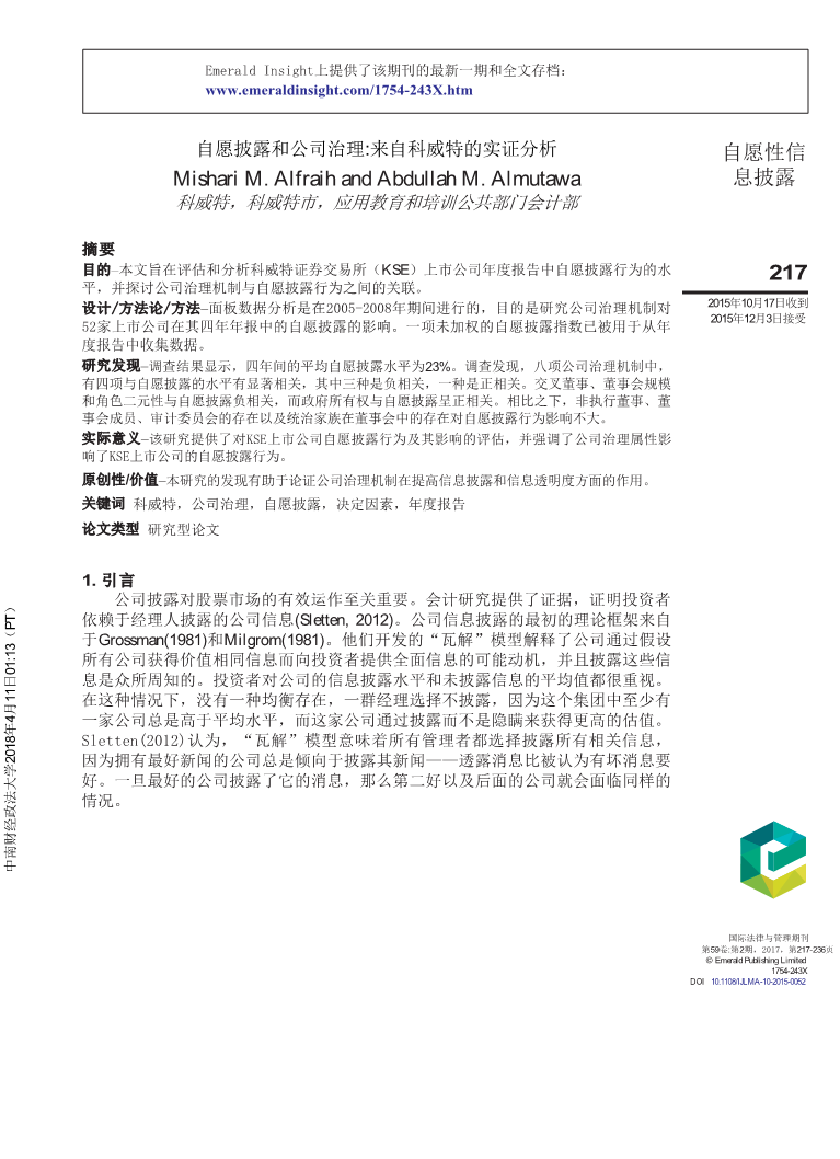 自愿披露和公司治理:来自科威特的实证分析外文翻译资料