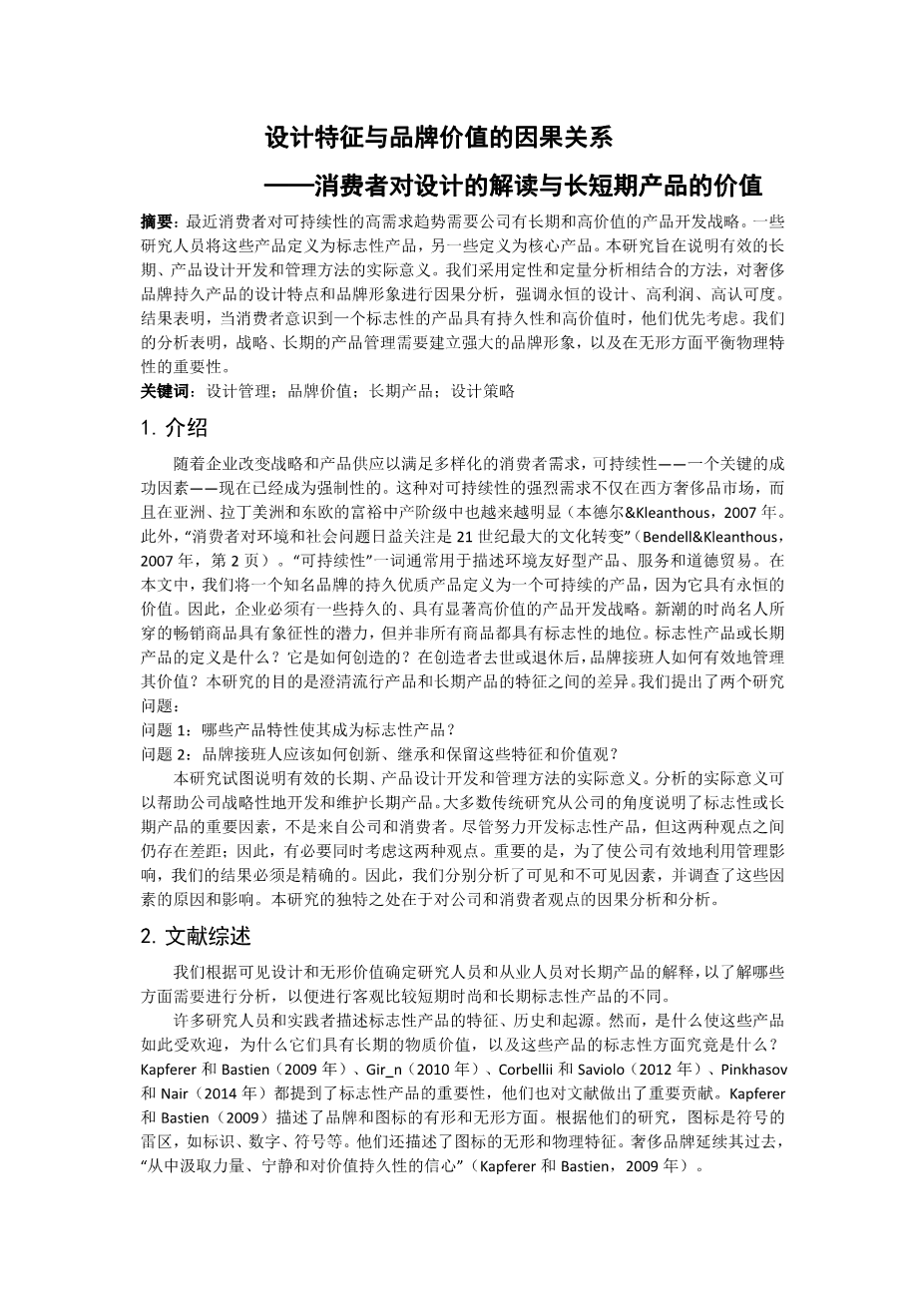 设计特征与品牌价值的因果关系——消费者对设计的解读与长短期产品的价值外文翻译资料
