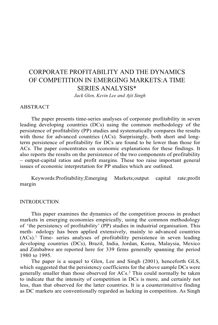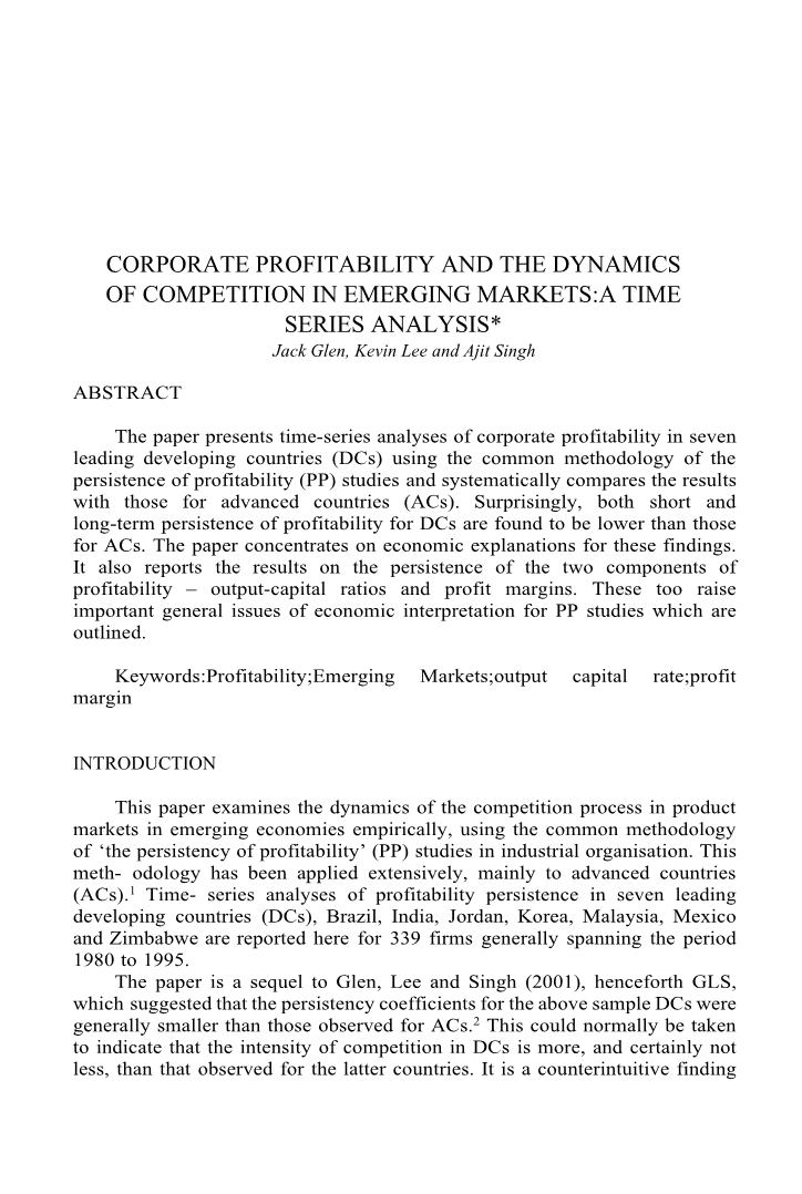 新兴市场企业盈利能力与动态竞争:时间序列分析外文翻译资料