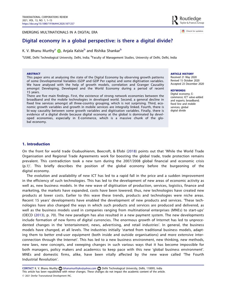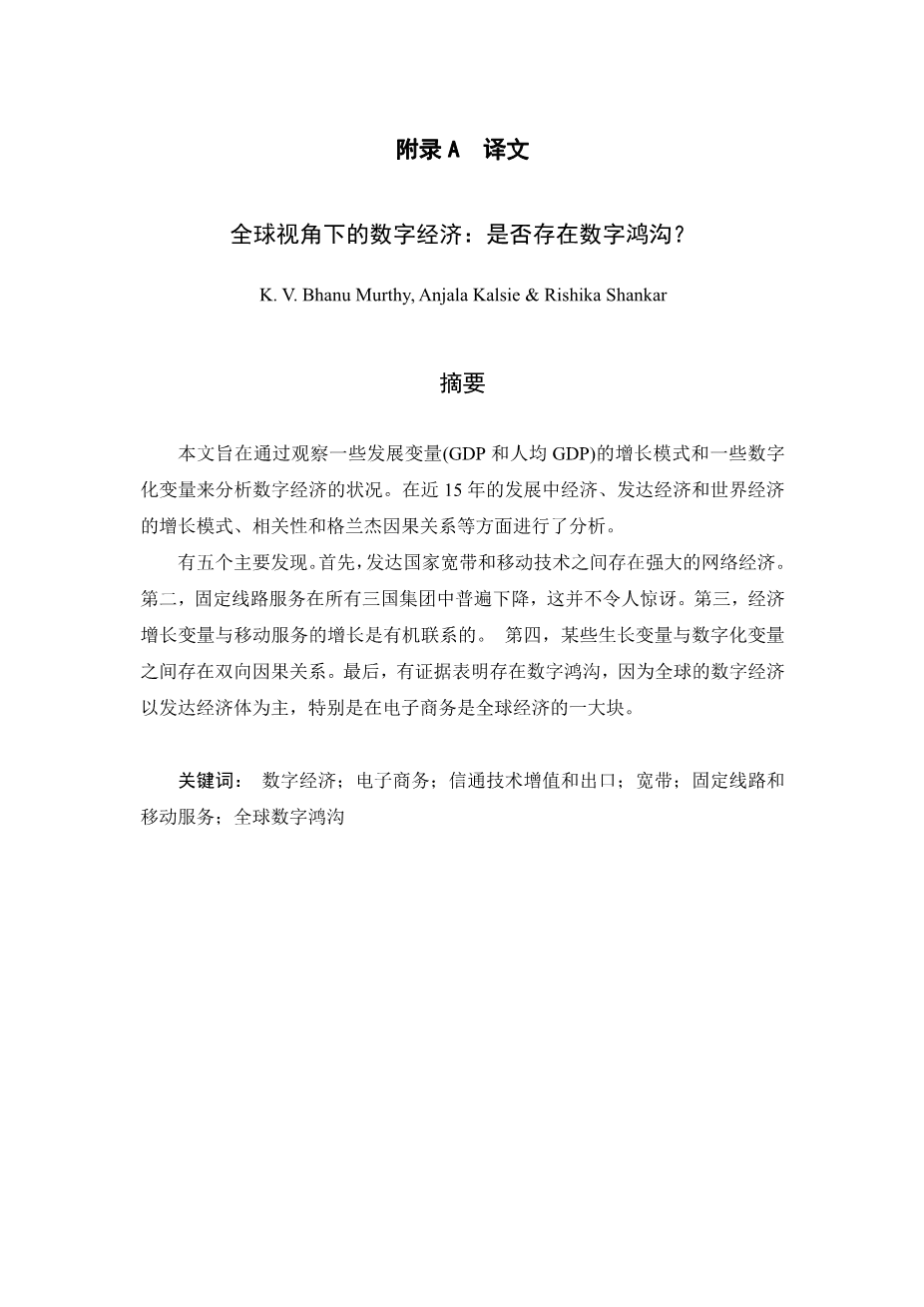 全球视角下的数字经济:是否存在数字鸿沟?外文翻译资料