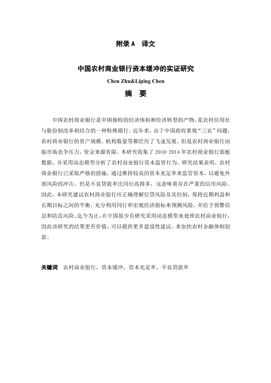 中国农村商业银行资本缓冲的实证研究外文翻译资料