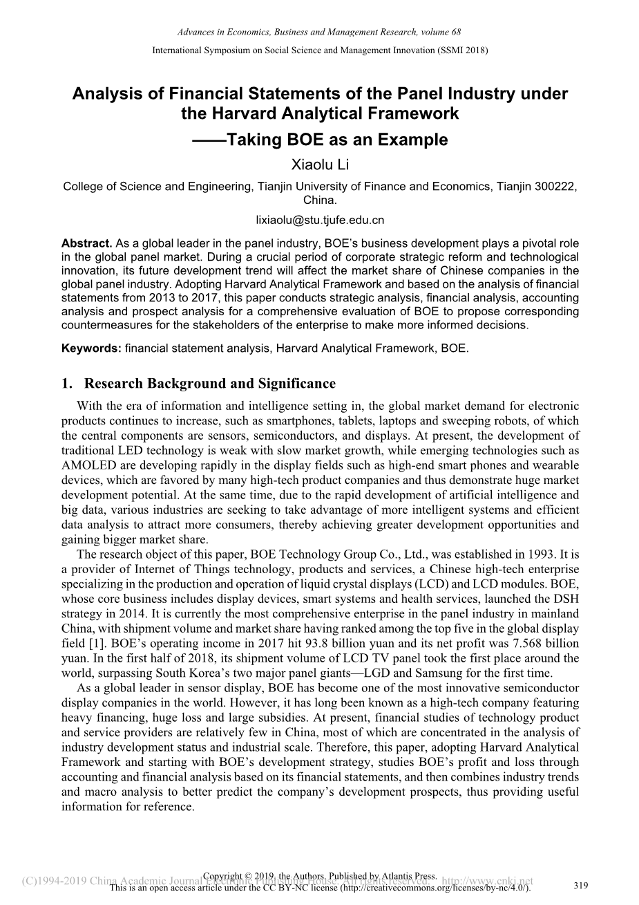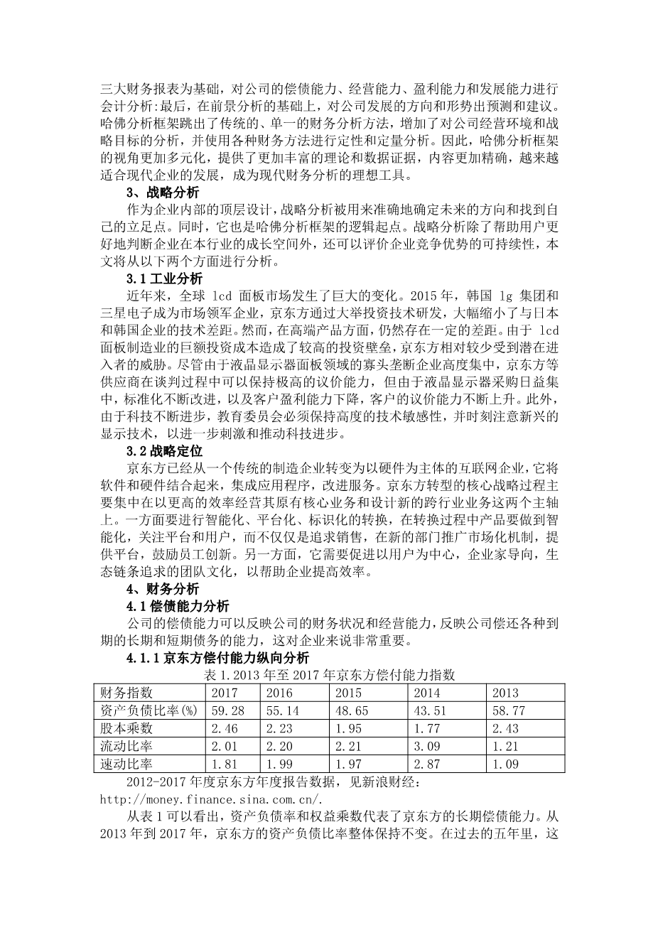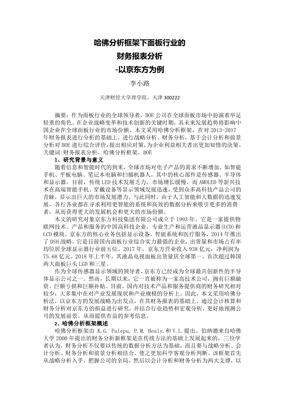 哈佛分析框架下面板行业的财务报表分析-以京东方为例外文翻译资料