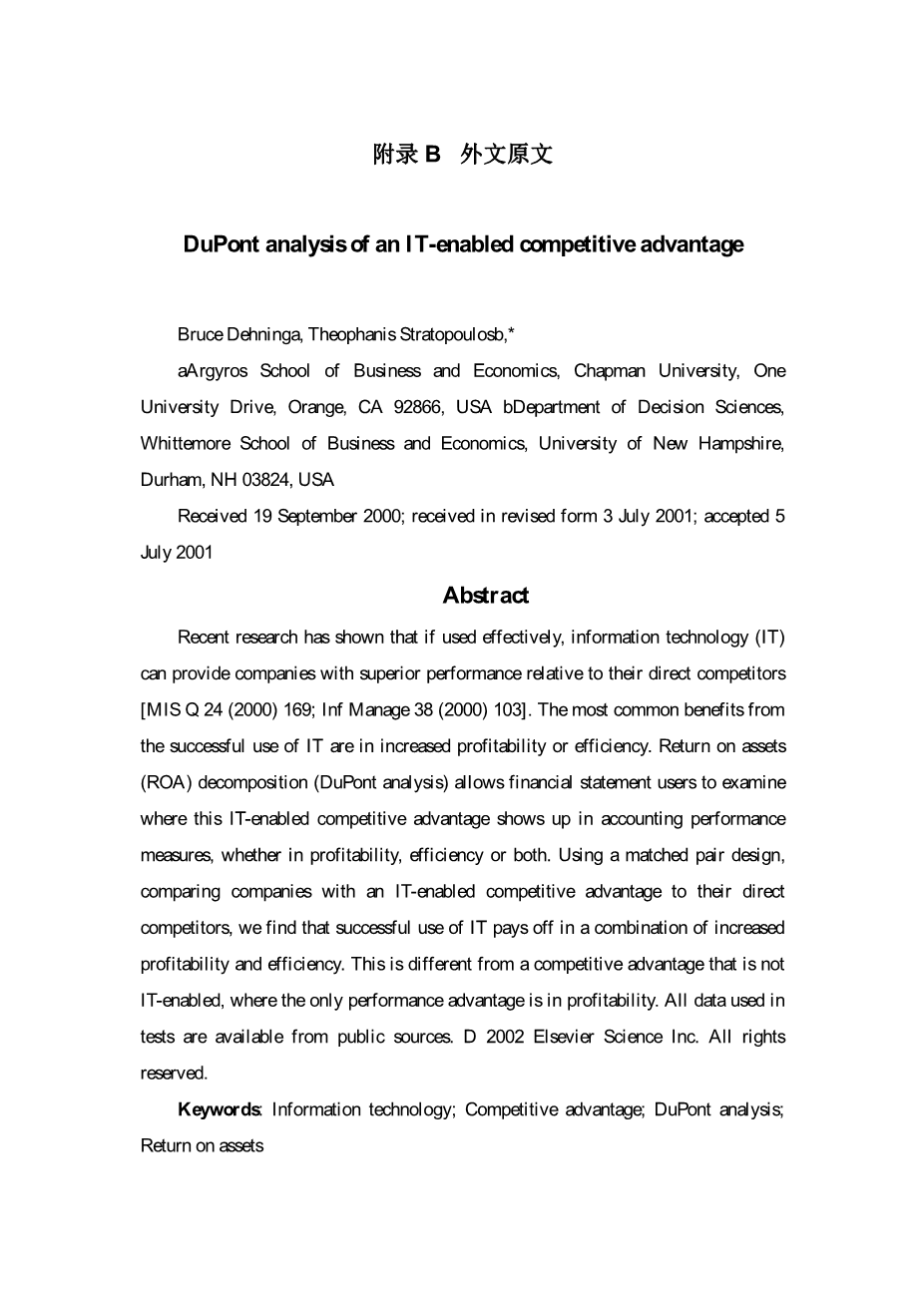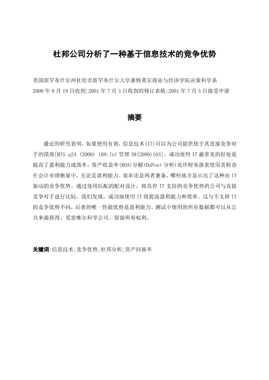 杜邦公司分析了一种基于信息技术的竞争优势外文翻译资料