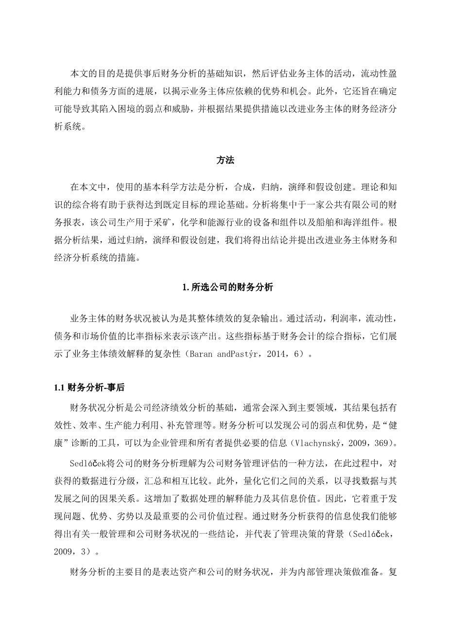 A financial situation analysis is the foundation of the companyrsquo;s economic performance analysis and usually proceeds down to primary fields and results as effectivity, efficiency, production capacity utilisation, supplement management and the like. Financial analysis detects weaknesses and strengths of the company, is the tool of “health” diagnostics and provides essential information to business management and to owners (Vlachynskyacute;, 2009, 369).