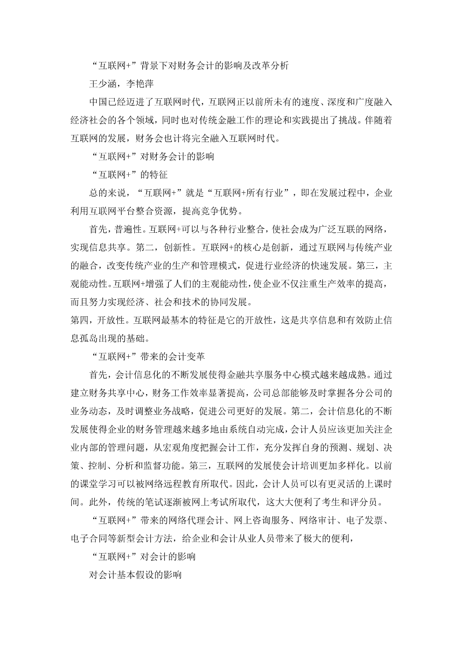“互联网 ”背景下对财务会计的影响及改革分析外文翻译资料